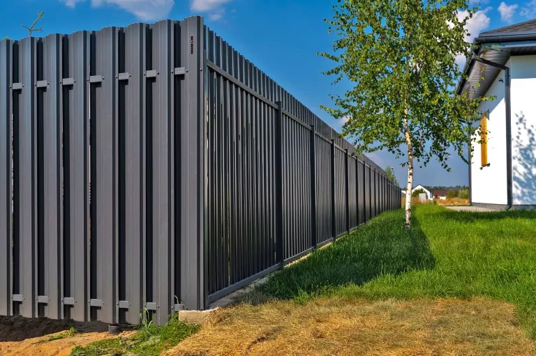 Популярный материал для строительства красивого и недорогого забора для дачи. Такие конструкции доступны и универсальны. Их прочность и долговечность напрямую зависят от высоты ребер, толщины стали и типа защитного покрытия (покраска или полимерный слой).