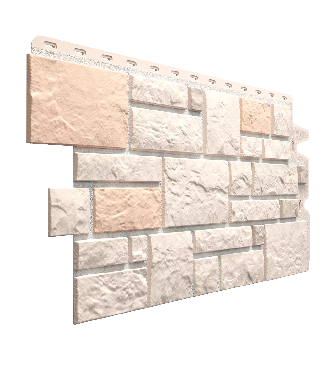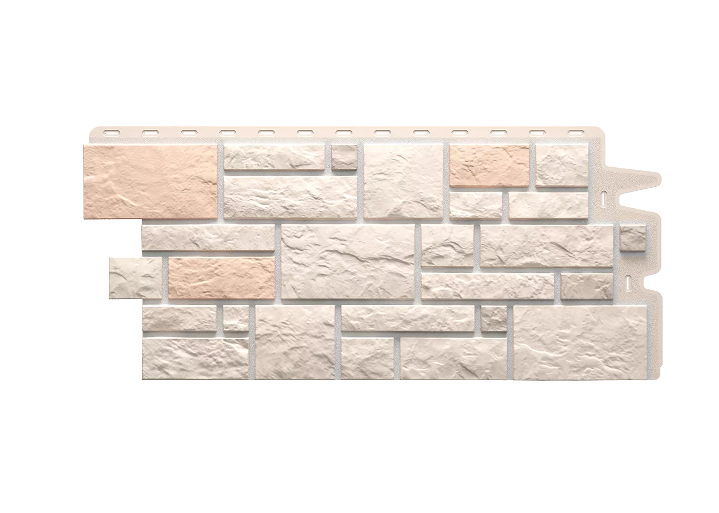 Фасадные панели «Лён» выглядят естественно и точно воспроизводят природный камень. Нежный кремовый оттенок не диссонирует с фактурой горной породы, а придает ей дополнительный визуальный объем.