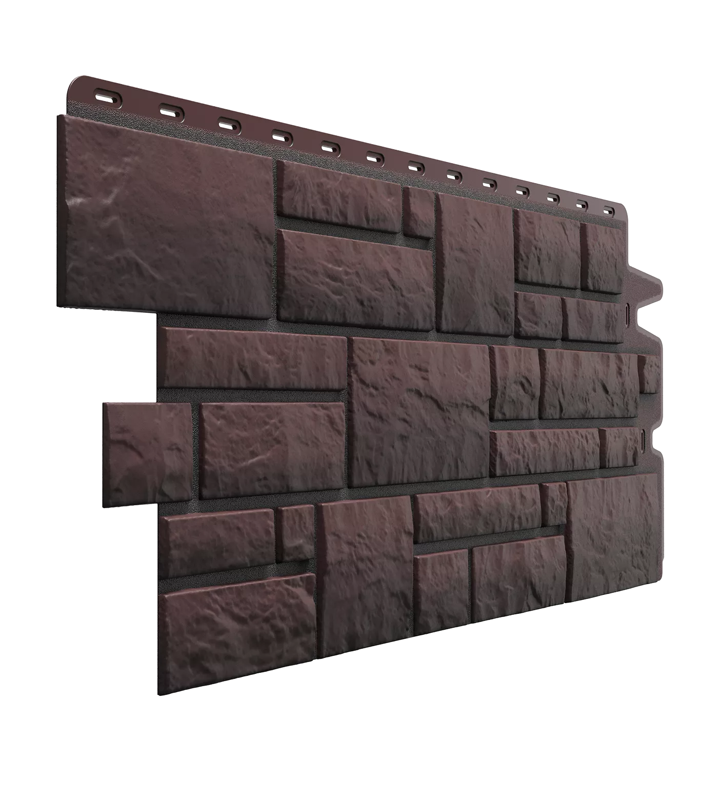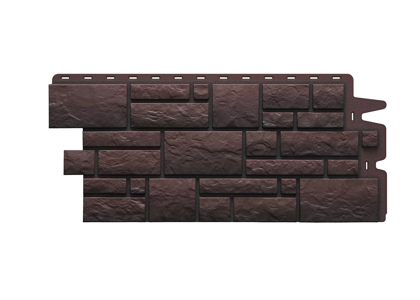 Текстура мрамора с четкой геометрией камня и контрастными швами помогает создавать необычные фасады. Для насыщенного темного оттенка панелей выбирайте фасадные аксессуары табачного и графитового цвета.