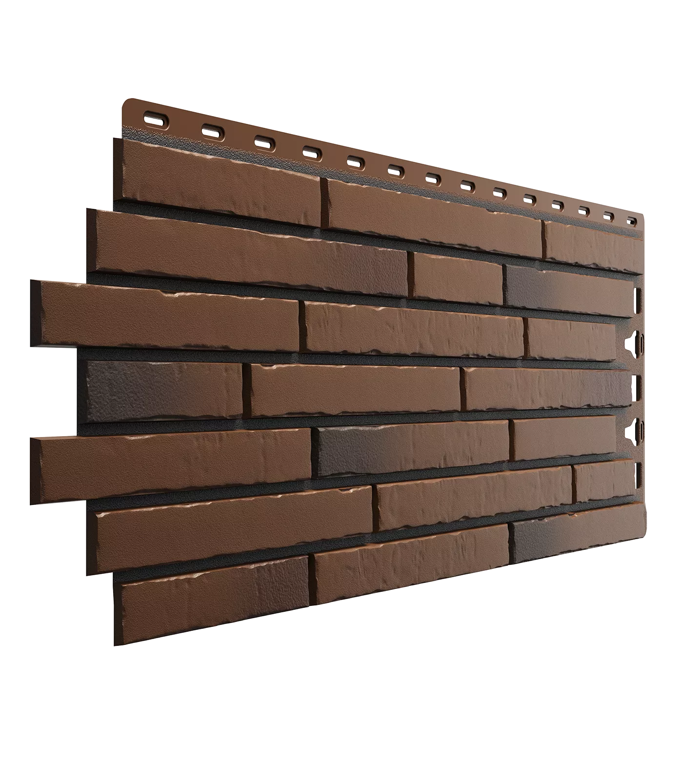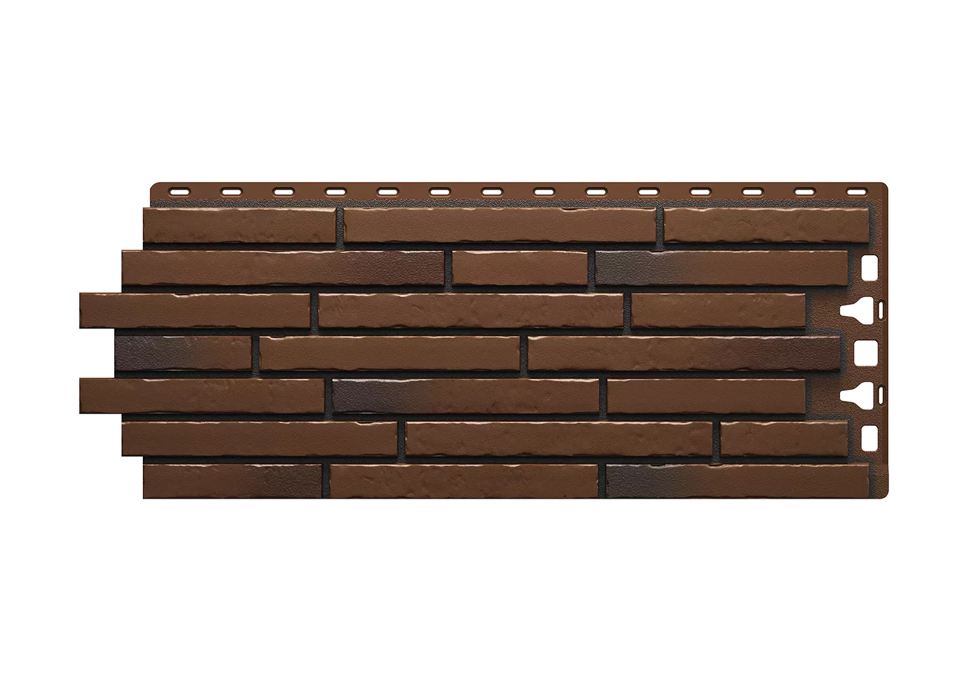 Панели «Калахари» с эффектом обожженного кирпича выделят фасад вашего дома среди других. Чтобы уравновесить интенсивный оттенок, используйте водосточные системы в тон мягкой черепицы и нейтральные аксессуары для монтажа.