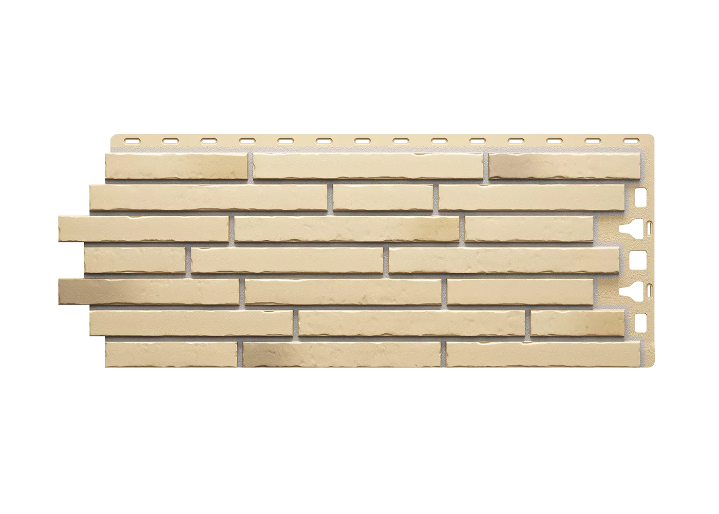 Тёплый песчаный оттенок узкого клинкерного кирпича хорошо комбинируется с гибкой черепицей как приглушенных, так и насыщенных цветов. Панели, имитирующие ригельный кирпич, отлично подойдут для облицовки современных фасадов
