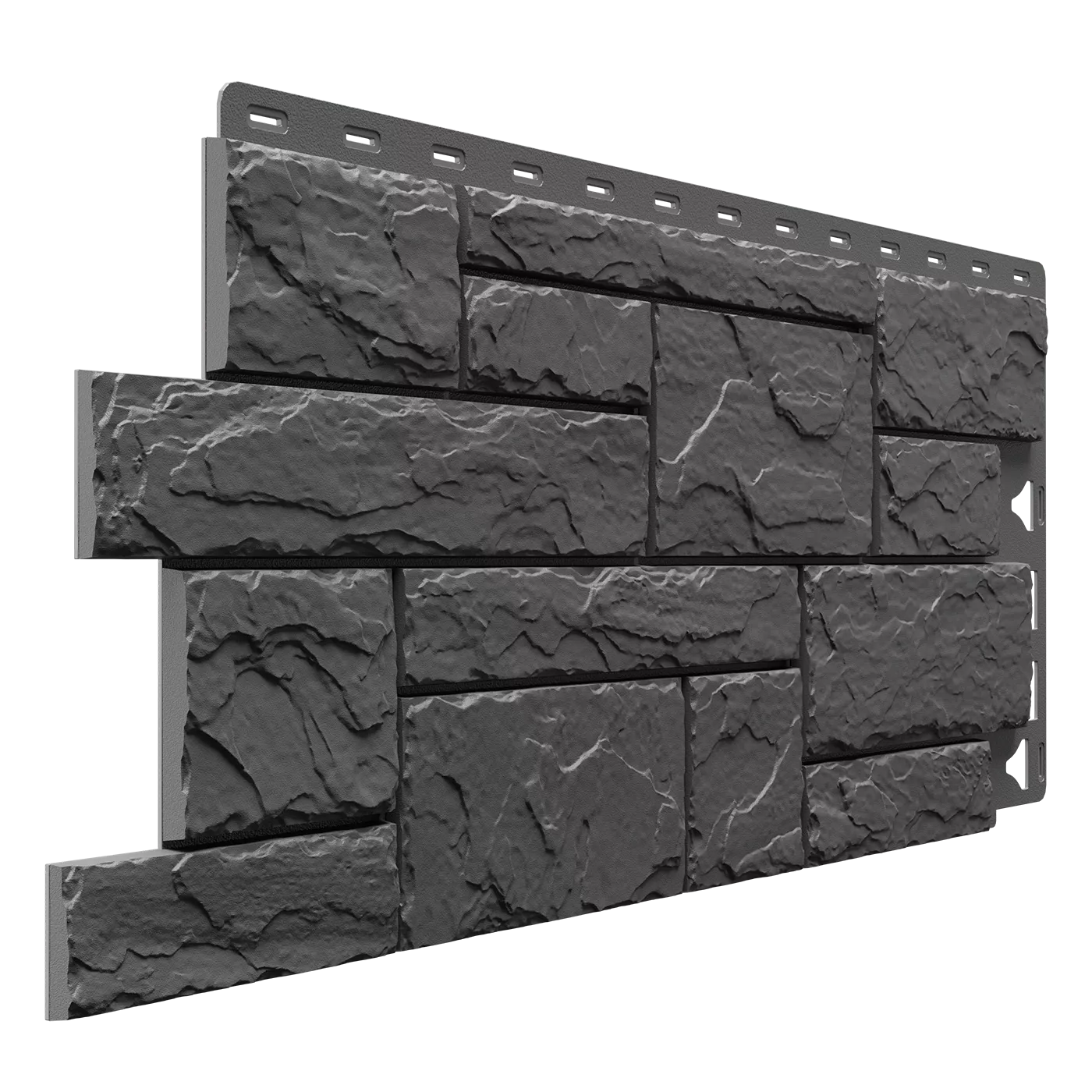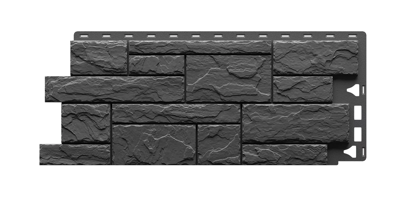 Уверенный дуэт стального оттенка и фактуры скальной породы позволяет использовать эти панели как для монолитной отделки фасада, так и для частичной облицовки. Чтобы подчеркнуть особенности проекта, скомбинируйте панели с сайдингом контрастного оттенка.