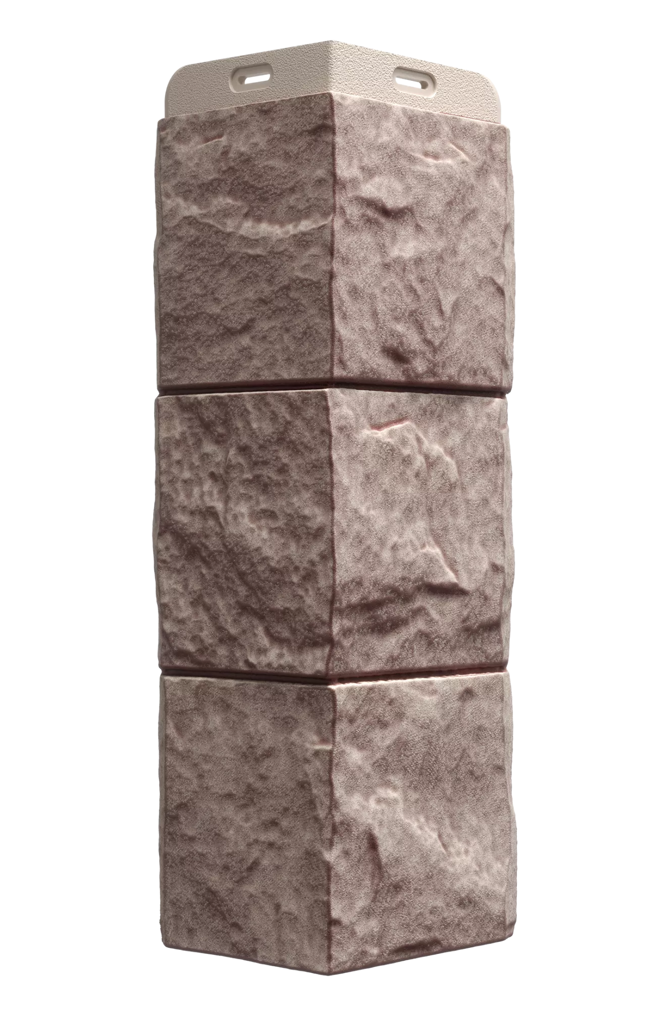 Углы в цвете «перламутровый» — идеальное дополнение для фасадных панелей с эффектом крупноформатной каменной кладки. Спокойный многогранный цвет и швы в тон материала делают стык панели и угла практически незаметным.