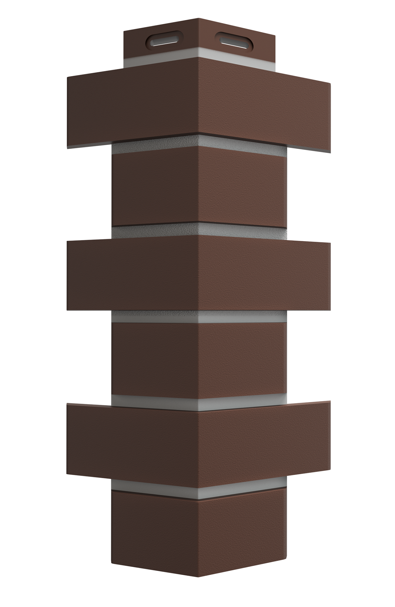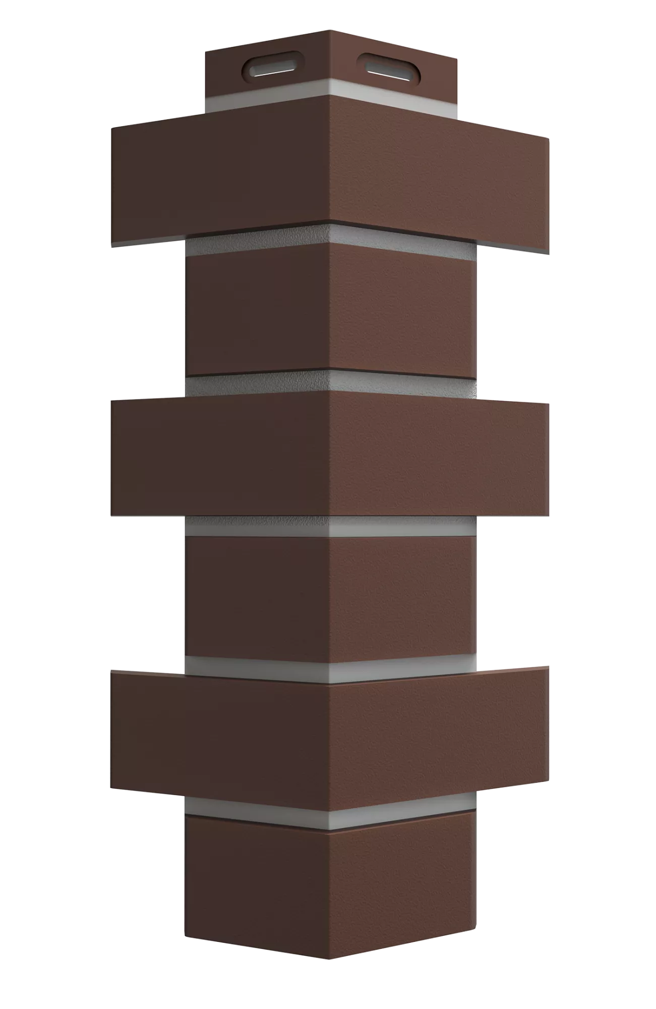 Насыщенный шоколадно-коричневый оттенок отлично подходит для декоративной отделки цоколя, имитирующей фламандскую кладку с контрастными швами. Углы скрывают края фасадных панелей, чтобы облицовка выглядела монолитной.