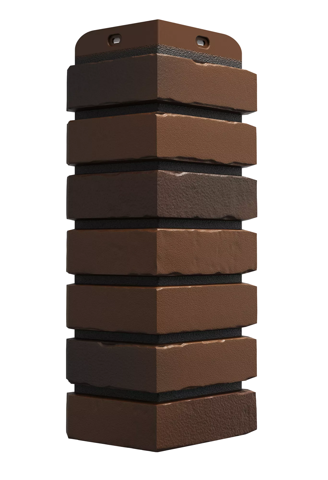 Углы, имитирующие кладку из обожжённого клинкерного кирпича насыщенного шоколадного цвета, достойно завершат облицовку цоколя фасадными панелями «калахари». Интенсивный оттенок подчеркнёт контраст цоколя и светлого фасада.
