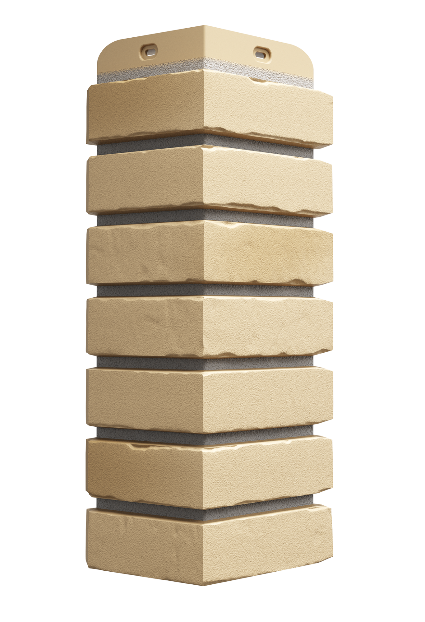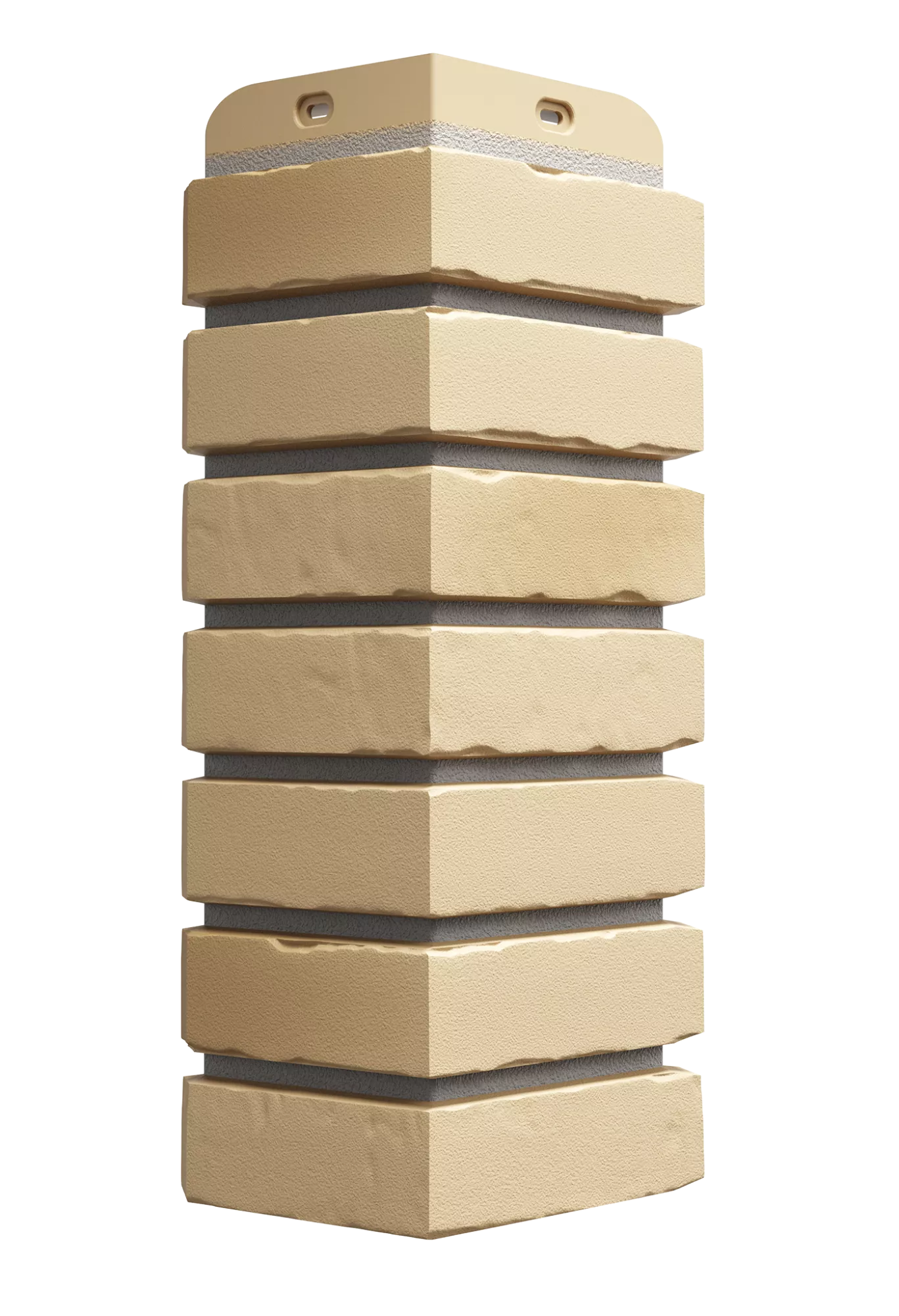 Красивое сочетание удлинённой формы клинкерного кирпича и солнечно-бежевого оттенка — то что нужно для отделки цоколя дома со светлым фасадом. Углы цвета «каракумы» превосходно смотрятся в тандеме с песчаными фасадными панелями.