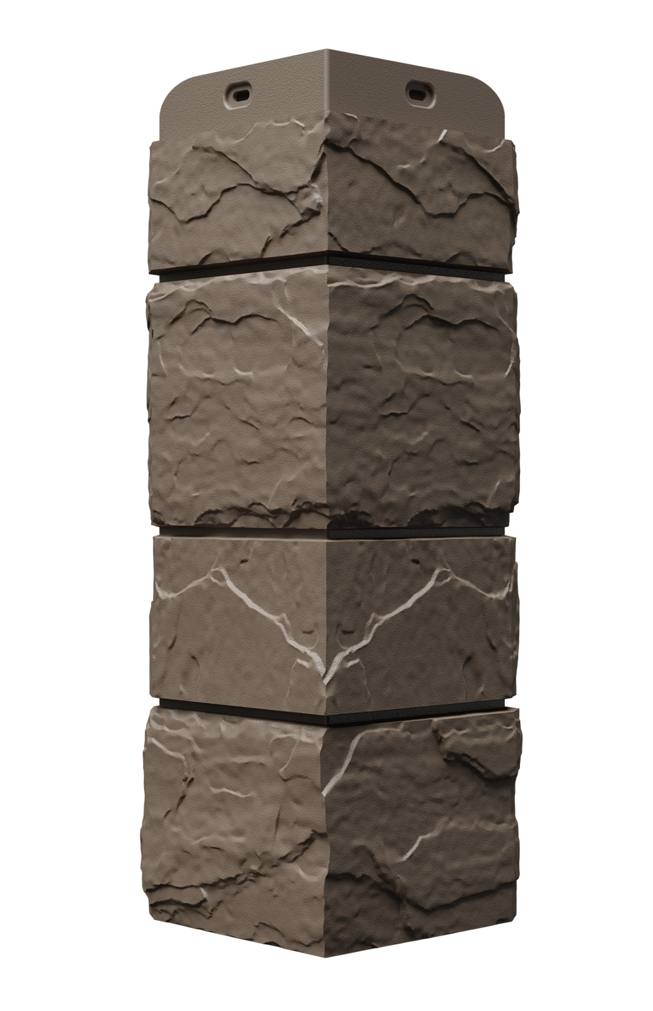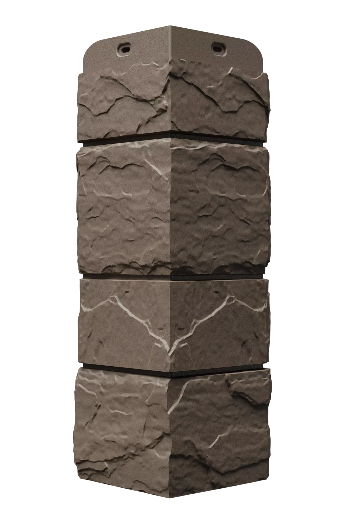 Углы выразительного кофейного оттенка точно воспроизводят слоистую фактуру природного тёмного сланца. Используйте их для контрастной облицовки цоколя или декоративной отделки архитектурных элементов фасада.