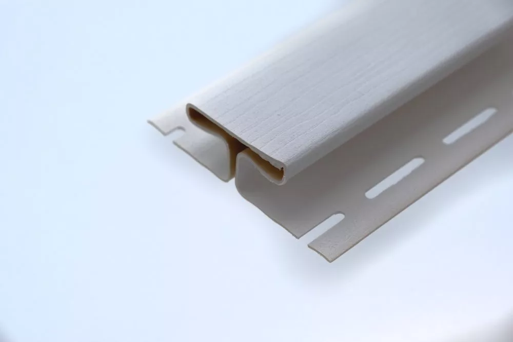 Когда длины панели сайдинга недостаточно для отделки фасада от угла до угла, монтаж отделки производится с использованием профиля H-Trim. Он скрывает место вертикального стыка двух панелей, который невозможно выполнить заподлицо, поскольку необходимо соблюдать тепловой зазор.