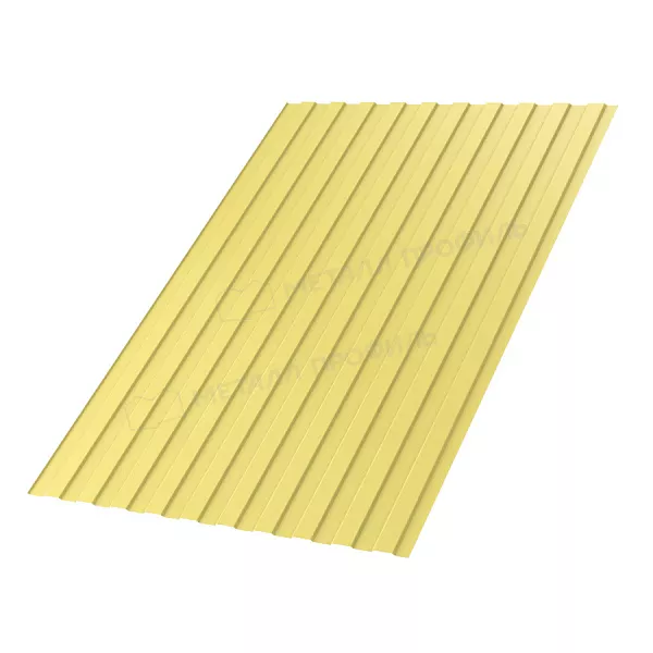 С-8 – самый низкий и весьма недорогой профиль. Его способность выдерживать большие нагрузки относительно невелика, в связи с этим такой профнастил не используется в конструкциях, где необходима усиленная жёсткость. Чаще всего его применяют в качестве стенового облицовочного материала, а также для возведения ограждений и монтажа потолков. Характеризуясь маленькой высотой – всего 8 мм – одновременно он имеет максимальную рабочую ширину – 1150 мм. В основном на изготовление С-8 идёт металлопрокат толщиной от 0,4 до 0,7 мм. Такой прочности стали будет достаточно для отделки стен или установки заборов в климатических зонах с низкой ветровой нагрузкой. Для вспомогательных построек ( туалетов, бытовок, сараев, времянок) в Компании Металл Профиль можно купить профнастил без полимерного покрытия толщиной 0,35 и менее мм, чтобы не переплачивать без необходимости.Покрытие Полиэстер: