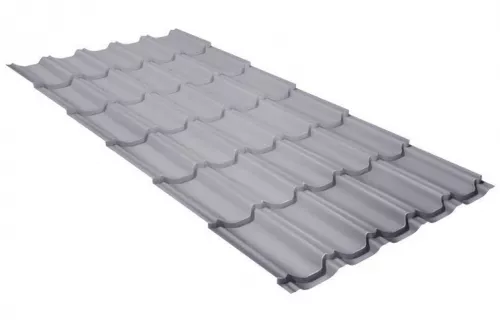 Металлочерепица квинта плюс Grand Line 0,5 Satin RAL 9006 бело-алюминиевый