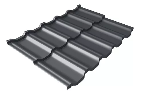 —Металлочерепица модульная квинта Uno Grand Line c 3D резом 0,5 GreenCoat Pural BT, matt RR 23 темно-серый (RAL 7024 мокрый асфальт)