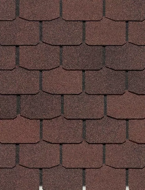 Гибкая черепица из коллекции Сланец традиционного коричневого оттенка предназначена для настила на кровлю с уклоном от 12 градусов, хорошо сочетается с теплыми и нейтральными цветами для фасада.