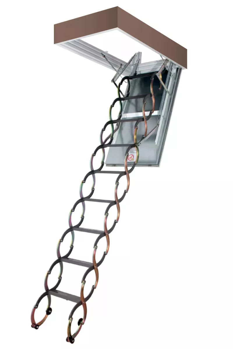 Складная ножничная лестница LSF с огнестойким люком может использоваться как преграда распространению огня во время пожара. Изготовлена из оцинкованной стали и обладает высокими показателями огнестойкости (60 минут). По периметру люка, изготовленного из огнеупорного материала, установлен контур уплотнения, который расширяется под влиянием температуры и ограничивает проникновение дыма. Толщина крышки с утеплителем (56 мм) и контур уплотнения, установленный по периметру крышки, обеспечивают высокую степень герметичности и сохраняет тепло в помещении. Лестница LSF имеет российский сертификат, подтверждающий соответствие требованиям пожарной безопасности. Подходит для помещений, в которых мало места для раскладывания. Не требует специальных навыков и подходит для самостоятельной установки. Поставляется с монтажным комплектом LXK и декоративными планками. Видеообзор чердачной лестницы