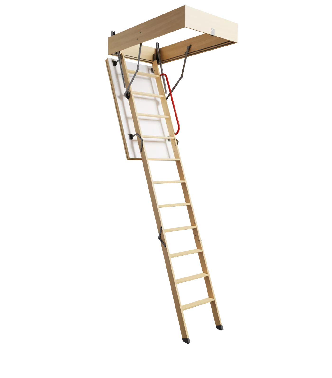 Чердачная лестница Docke PREMIUM TERMO – самая популярная теплая лестница. Благодаря повышенному утеплению в крышке люка (пенополистирол 50 мм), и двойному контуру уплотнения в коробе, лестница хорошо подходит для домов, где значительная разница температур. Крышка люка белого цвета идеально впишется в интерьер со светлыми потолками, при желании вы можете окрасить ее в необходимый цвет. Наличие поручня, широкий проем и длина ступени в 440 мм позволяет удобно поднимать вещи, которые вы планируете разместить в чердачном пространстве. Толщина противоскользящих ступеней составляет 22мм. Максимальная нагрузка 170 кг. В комплекте поставляются пластиковые наконечники и поручень.