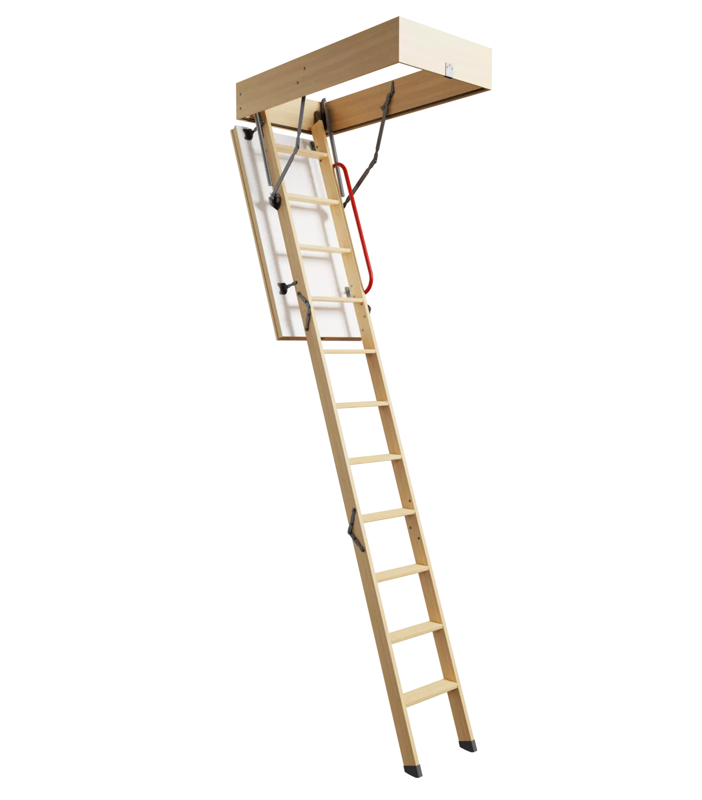 Чердачная лестница Docke Standard Termo обладает повышенными теплоизоляционными характеристиками. Такая лестница подойдет для установки в высокие помещения (высота потолка до 3м), где значительная разница температур с чердачным пространством (холодный чердак). Толщина крышки люка 56 мм, 50 мм – пенополистирол. Изготовлена из ХДФ белого цвета. Высота короба 180 мм в отличие от чердачных лестниц серий PREMIUM и STANDARD, у которых 140 мм; установлен один контур уплотнения. Комфортная ширина ступени 80мм позволит легко подняться на чердак, а рельефная поверхность предотвратит скольжение. Максимальная нагрузка 170 кг. В комплекте поставляются пластиковые наконечники и поручень.