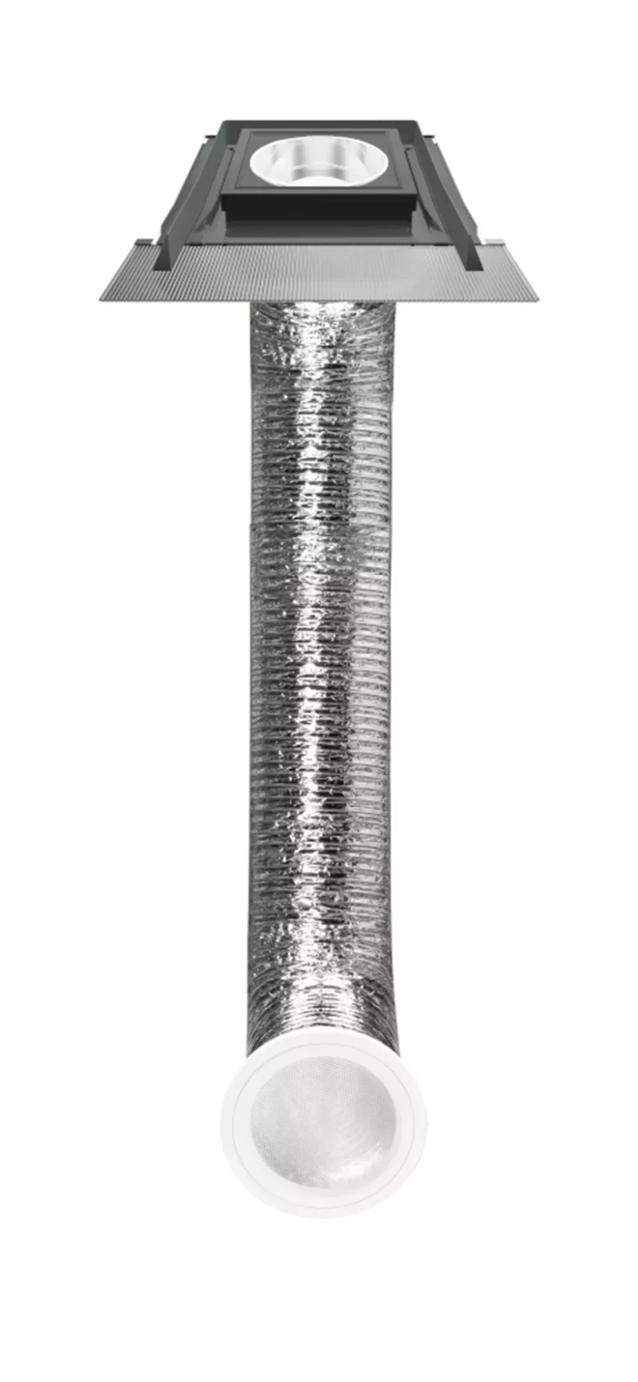 Туннель дневного света с мягкой трубой без купола. Создан для помещений, в которых невозможно установить фасадные или мансардные окна. Краткое описание:Гибкая труба позволяет обходить препятствия в виде труб, балок и концов коммуникаций..В комплекте идёт рассеиватель, который позволяет равномерно осветить комнату.Оклад идёт в комплекте и уже совмещён с внешней частью туннеля, для быстрого монтажа и дополнительной защиты от протекания. Туннель дневного света был специально разработан и изготовлен для использования в помещениях, в которых по техническим причинам невозможно установить фасадные или мансардные окна. Примером таких помещений могут стать ванные, гардеробные комнаты, кладовые, коридор, лестничные площадки и даже подвалы. Благодаря своей гибкости, это идеальное решение для установки на участках в помещениях, где есть конструктивные препятствия, которые необходимо обойти (балки, трубы, концы коммуникаций). Туннель дневного света работает таким образом: через «окно» свет попадает в мягкую отражающую трубу, которая заканчивается рассеивателем и потолочным плафоном. Благодаря наличию рассеивателя в плафоне помещение равномерно освещается дневным светом. Это позволяет экономить расход электроэнергии. Оклад идёт в комплекте и выбирается в зависимости от типа кровельного покрытия. Последняя буква названия вашего туннеля зависит от кровли.SFS – для кровельных покрытий толщиной до 5 мм (гибкая черепица, листовой металл, оцинковка, медь);SFZ – для кровельных покрытий толщиной до 45 мм (черепица, металлочерепица, профнастил, шифер, битумные волнистые листы);SFH – для кровельных покрытий толщиной до 90 мм (черепица, металлочерепица).ОсобенностиГибкая светоотражающая труба изготовлена из металлизированного полиэстера и дополнительно усилена металлической проволокой. Это позволяет создать прочную светоотражающую конструкцию.Длина туннеля 2,1 м, при желании его можно сделать длиннее с помощью дополнительного элемента SLM.Максимальная рекомендуемая длина гибкой трубы составляет 4 м для диаметра 350 мм и 6 м для диаметра 550 мм.При установке рекомендуется максимально натягивать трубу, чтобы её поверхность была более гладкой и светопотери были минимальными.Потолочная часть состоит из пластиковой планки-рамы и решётки белого цвета, а также рассеивателя из акрила. Идеально подойдёт для светлых потолков.Оклад идёт в комплекте и уже совмещён с внешней частью туннеля, для быстрого монтажа и дополнительной защиты от протекания. Цвет оклада RAL 7022.Устанавливается в крышу с уклоном 15°-60°.Гарантия на туннель дневного света - 7 лет.Изгиб туннеля в наклонной крыше Видеоинструкция по монтажу SF_
