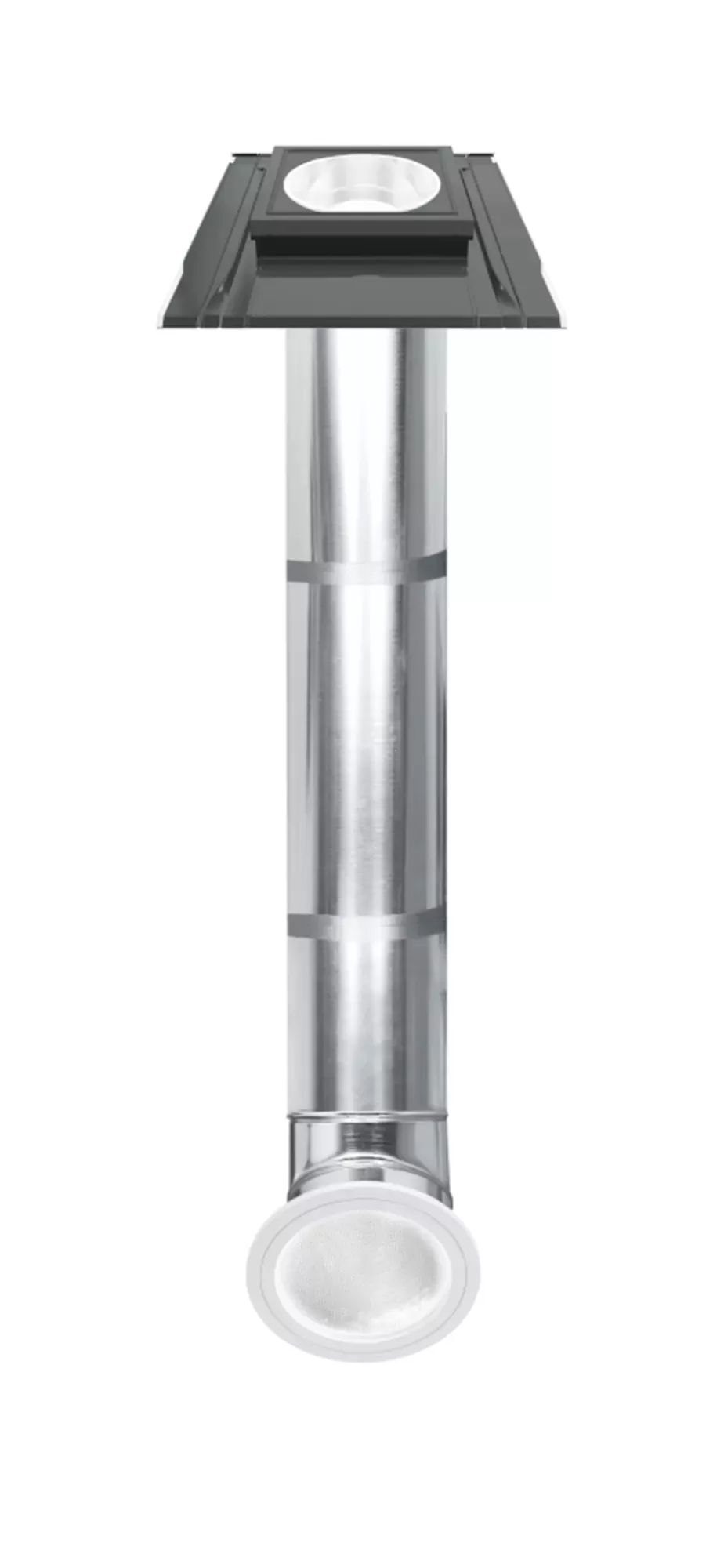 Туннель дневного света с жёсткой трубой без купола. Создан для помещений, в которых невозможно установить фасадные или мансардные окна. Краткое описание:При одном отражении теряется всего лишь 2% света.В комплекте идёт рассеиватель, который позволяет равномерно осветить комнату.Оклад идёт в комплекте и уже совмещён с внешней частью туннеля, для быстрого монтажа и дополнительной защиты от протекания.Туннель дневного света был специально разработан и изготовлен для использования в помещениях, в которых по техническим причинам невозможно установить фасадные или мансардные окна. Примером таких помещений могут стать ванные, гардеробные комнаты, кладовые, коридор, лестничные площадки и даже подвалы.Туннель дневного света работает таким образом: через «окно» свет попадает в жёсткую отражающую трубу, которая заканчивается рассеивателем и потолочным плафоном. Благодаря наличию рассеивателя в плафоне помещение равномерно освещается дневным светом. Это позволяет ограничивать расход электроэнергии.Оклад идёт в комплекте и выбирается в зависимости от типа кровельного покрытия. Последняя буква названия вашего туннеля зависит от кровли.SRS – для кровельных покрытий толщиной до 5 мм (гибкая черепица, листовой металл, оцинковка, медь);SRZ – для кровельных покрытий толщиной до 45 мм (черепица, металлочерепица, профнастил, шифер, битумные волнистые листы);SRH – для кровельных покрытий толщиной до 90 мм (черепица, металлочерепица).ОсобенностиНа жёсткую трубу нанесено светоотражающее покрытие на основе серебра, у которого коэффициент отражения света более 98% (отражательная способность нового зеркала составляет 90-95%).Минимальные потери на передачу света позволяют использовать световые люки SR_ длиной до 12 м.Благодаря специальной посадке, во время монтажа нет необходимости укорачивать элементы трубы, для этого достаточно глубже вставить одну деталь в другую.Потолочная часть состоит из пластиковой планки-рамы и решётки белого цвета, а также рассеивателя из акрила. Идеально подойдёт для светлых потолков.Длина туннеля с диаметром 350 мм - 2,1 м, а с диаметром 550 мм - 1,8 м. При желании туннель можно уделить или повернуть с помощью дополнительных элементов SRM и SRK.Устанавливается в крышу с уклоном 15°-60°.Гарантия на туннель дневного света - 7 лет.Изгиб туннеля в наклонной крыше Видеоинструкция по монтажу SF_