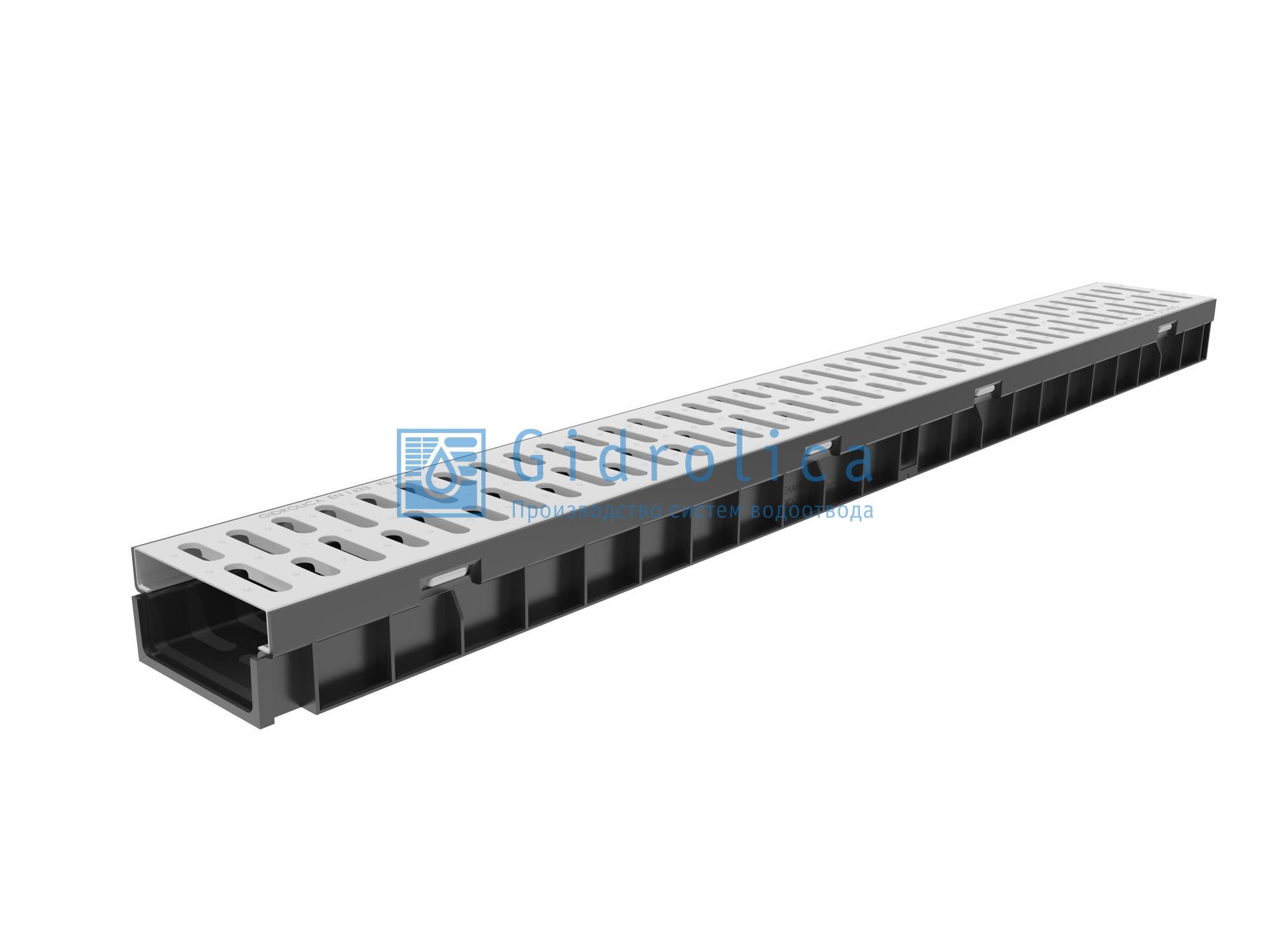 Комплект Gidrolica Light: лоток водоотводный ЛВ -10.11,5.5,5 - пластиковый с решеткой РВ -10.10,8.100 стальной оцинкованной, кл. A15