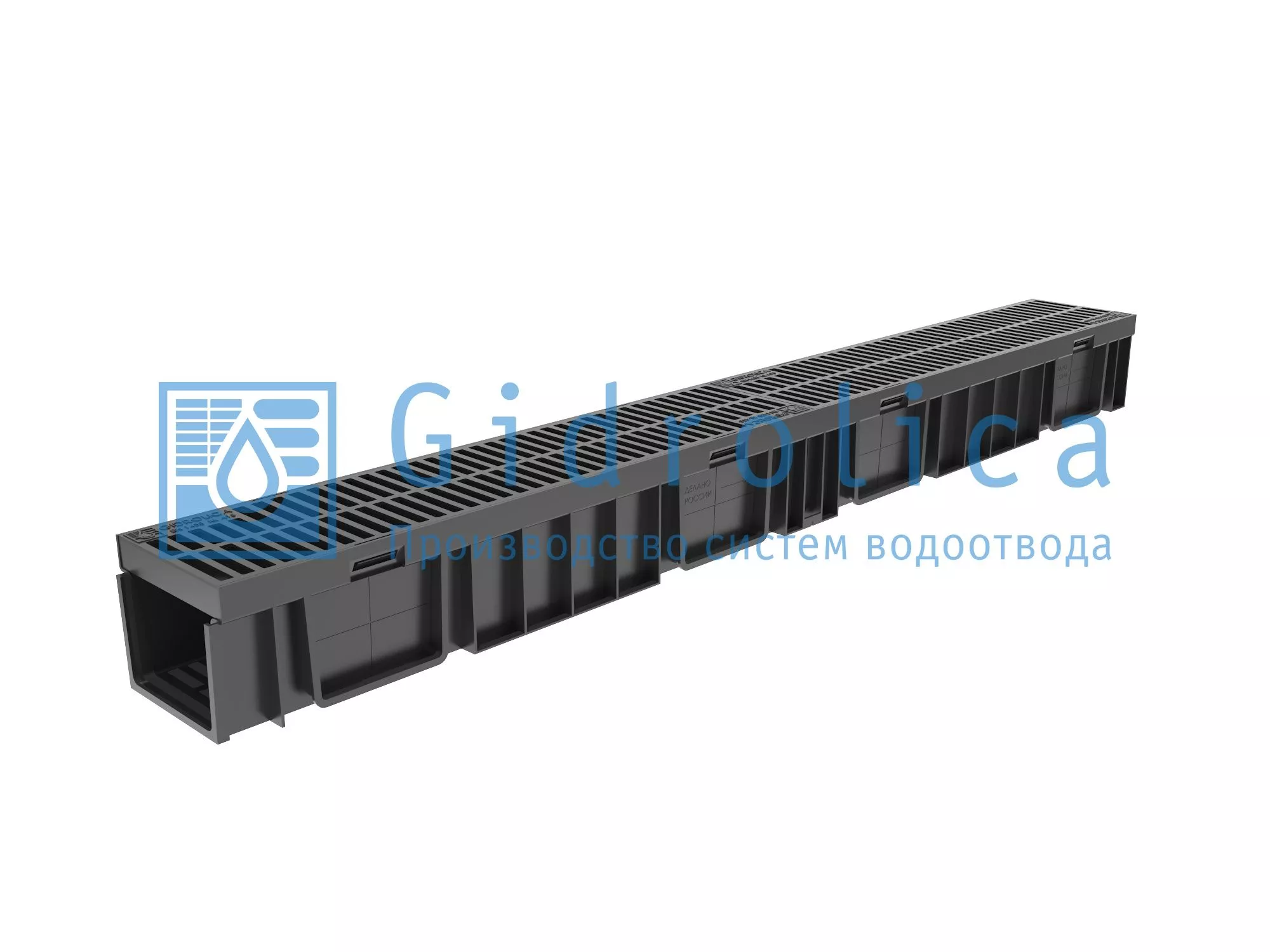 Комплект Gidrolica Light: лоток водоотводный ЛВ -10.11,5.9,6 - пластиковый с решеткой РВ- 10.11.50 пластиковой, кл. A15