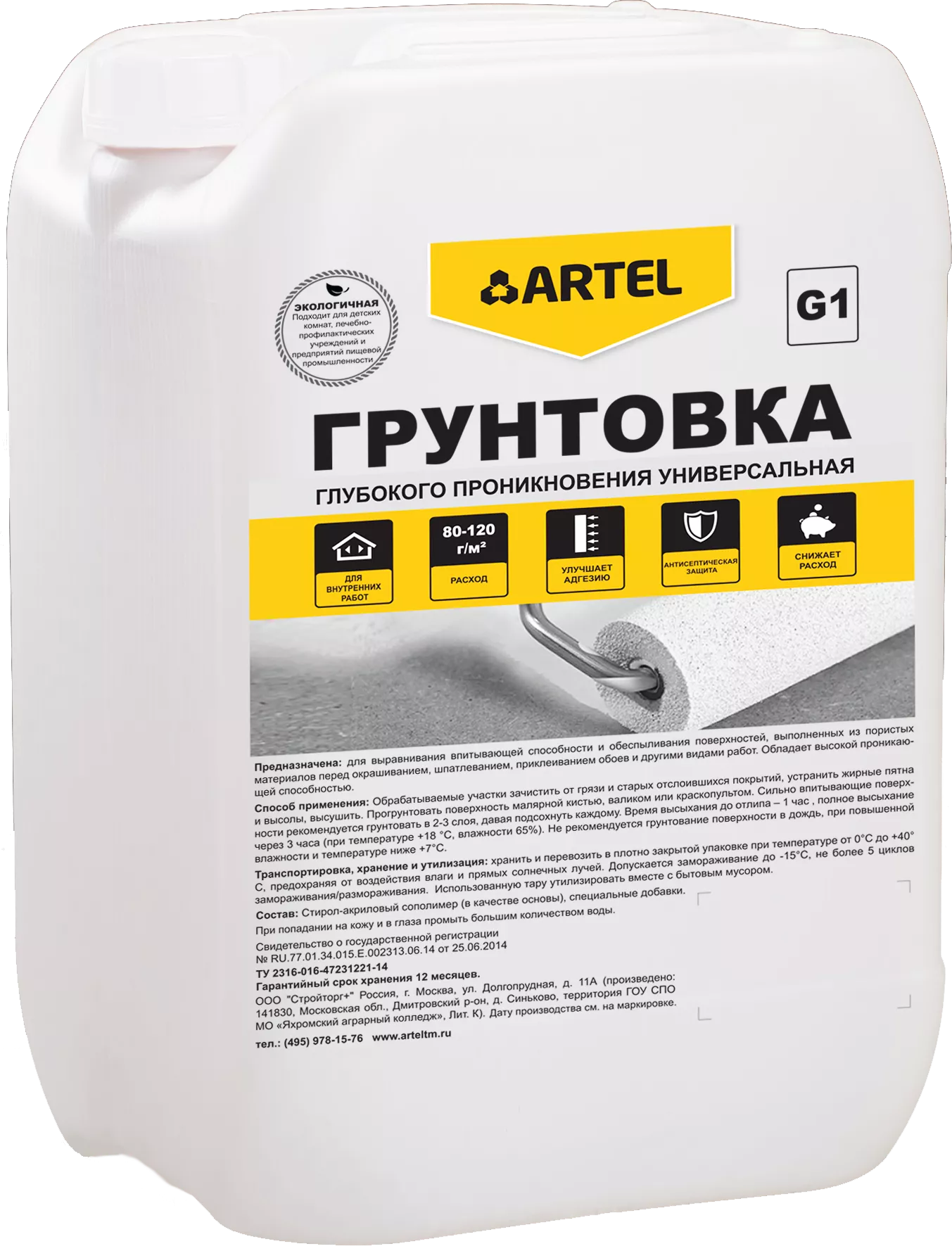ВНИМАНИЕ! Минимальная цена заказа на продукцию ARTEL составляет 10 000 рублей и не суммируется с товарами других производителей! Готовая к применению быстросохнущая, полимерная эмульсия белого цвета на водной основе. Изготовлена на основе импортного сырья, не содержит вредных веществ.Предназначена для выравнивания впитывающей способности и обеспыливания поверхностей, выполненных из пористых материалов перед окрашиванием, шпатлеванием, приклеиванием обоев и другими видами работ. Для внутренних работ.Экологичная, подходит для детских комнат, лечебно-профилактических учреждений и предприятий пищевой промышленности.