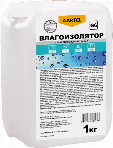 ВНИМАНИЕ! Минимальная цена заказа на продукцию ARTEL составляет 10 000 рублей и не суммируется с товарами других производителей! Полимерная эмульсия на водной основе, щелочеустойчивая. Изготовлена на основе импортного сырья, не содержит вредных веществ.Предназначена для гидроизоляции сильно впитывающих влагу поверхностей (пеноблоки, газосиликатные блоки, бетон, кирпичная кладка, гипсокартонные панели, цементная штукатурка и другие минеральные поверхности) перед шпаклеванием, нанесением штукатурок, укладкой облицовочной плитки, устройством наливных полов и другими видами работ. Для наружных и внутренних работ. Экологичная, подходит для детских комнат, лечебно-профилактических учреждений и предприятий пищевой промышленности.