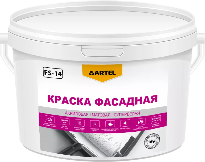 —Краска ВД-АК фасадная супер белая ARTEL FS-14 стандарт 14кг