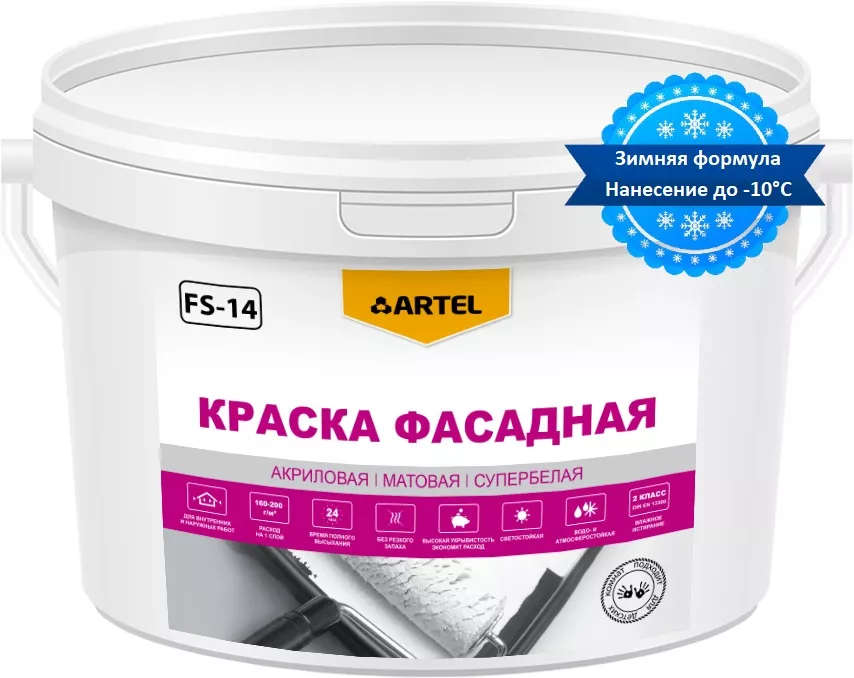 ВНИМАНИЕ! Минимальная цена заказа на продукцию ARTEL составляет 10 000 рублей и не суммируется с товарами других производителей! Краска фасадная, морозостойкая, для отрицательных температур ARTEL FS-14w: