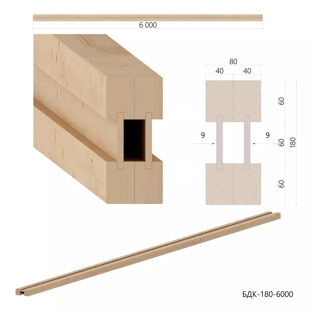 ДДБ-Балка представляет собой клееную конструкцию из двух деревянных брусков, соединенных между собой фанерой перемычкой, и образует в поперечном сечении форму двутавра. Именно поэтому балка и имеет полное название - Балка двутавровая клееная (Балка БДК) фанеро-деревянная.