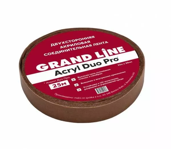 —Лента соединительная акриловая двухсторонняя Acryl Duo Pro Grand Line / Гранд Лайн, 20 мм*25 м