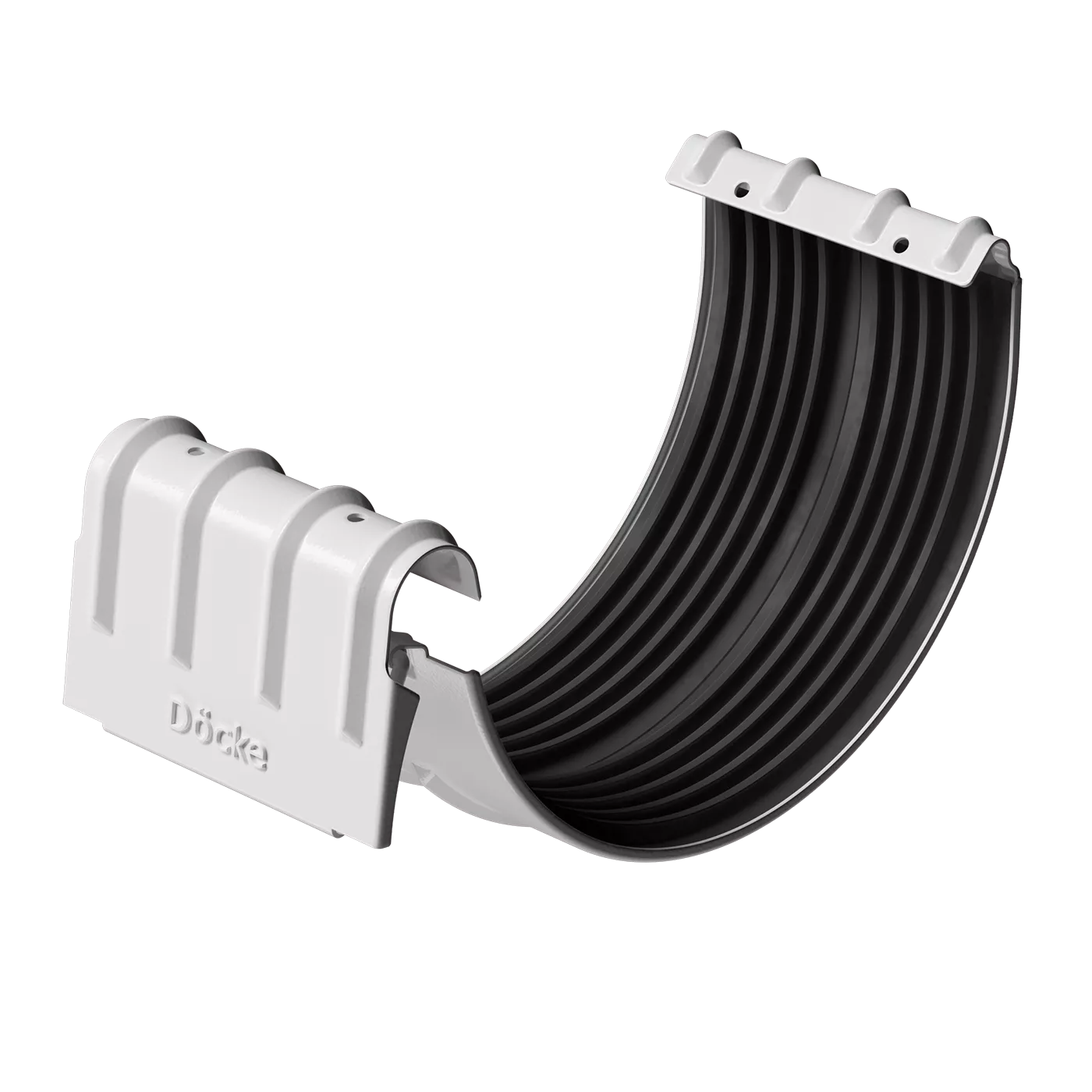 Соединители для желобов водосточной системы изготавливаются из стали с высоким классом цинкования, покрытой полиуретаном. Такое сочетание материалов делает водостоки Docke неподверженными коррозии на долгие десятилетия. Приобрести сертифицированную продукцию с гарантией производителя можно только у официальных дилеров.