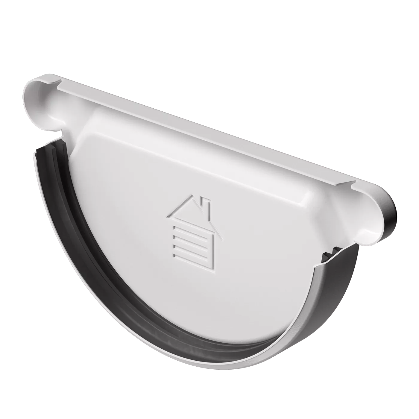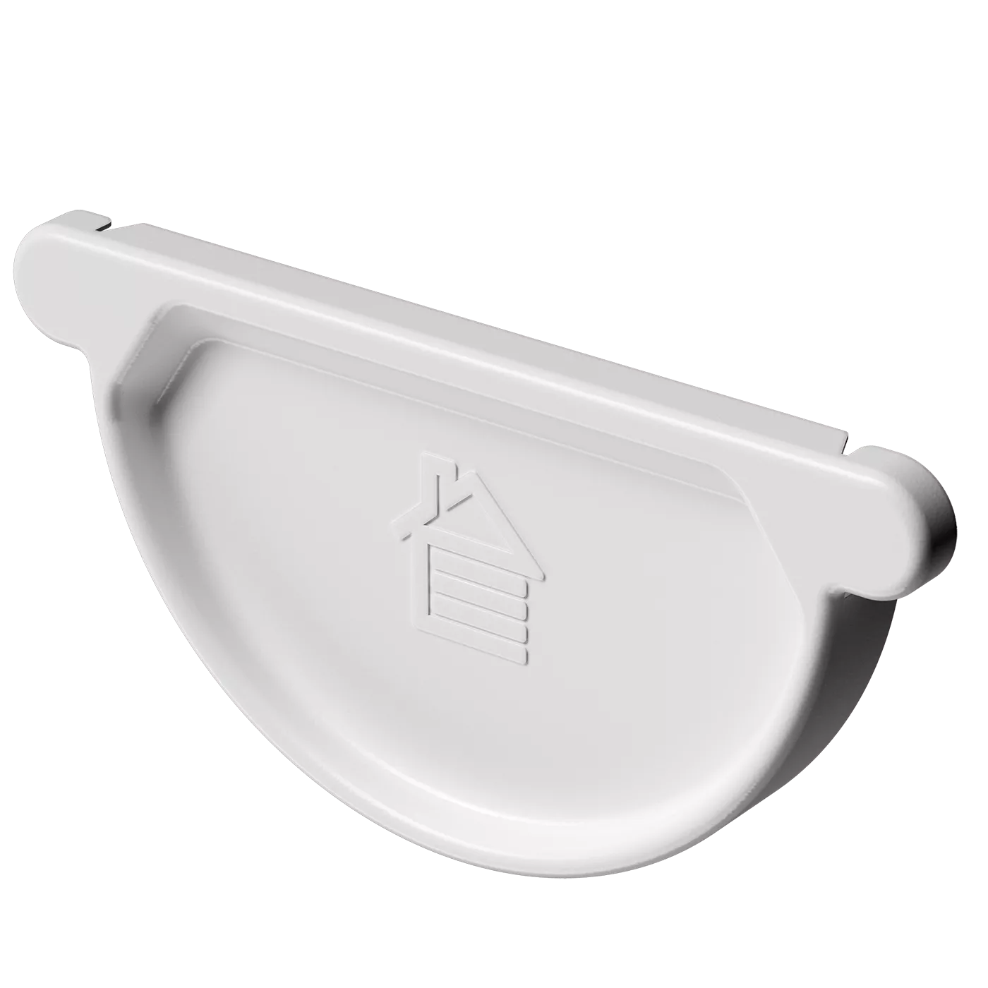 Заглушка крепится на торцы желоба и предотвращает вытекание воды из водосточной системы через края желобов.