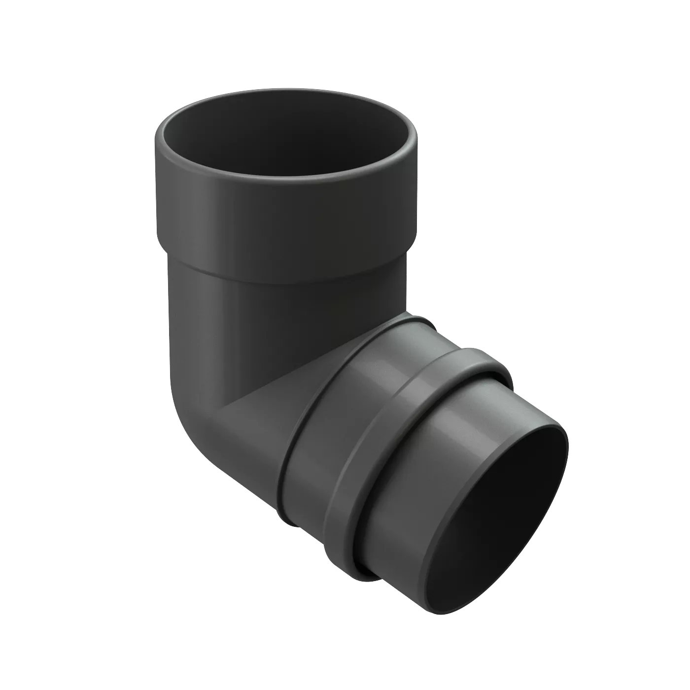 Воронка желоба через систему 2-ух колен соединяется с трубой водостока. В ассортименте представлены колена водосточной трубы в 45 градусов и 72 градуса.
