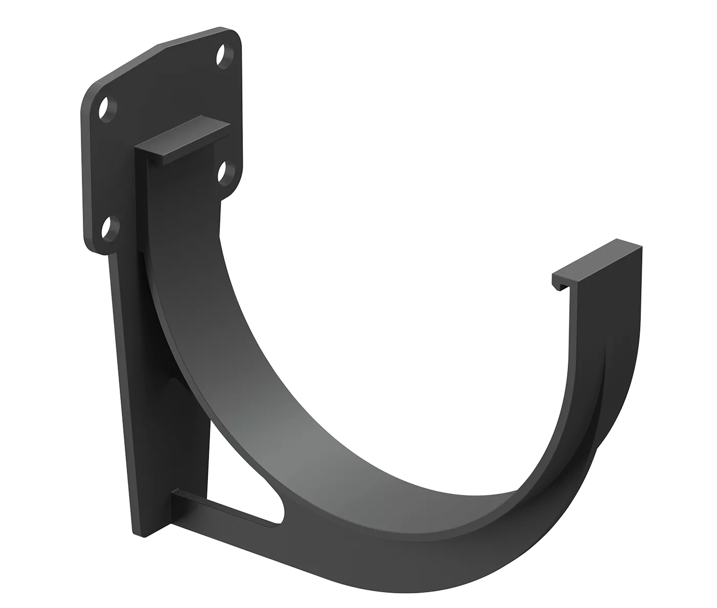 Прочные по конструкции кронштейны желоба, выполненные из материала ПВХ и покрашенные в цвет «Графит», выполняют роль держателя для желоба в водосточных системах Docke серии «Premium».