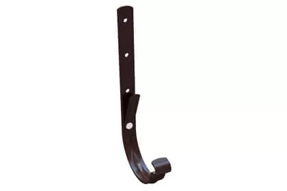 Элемент водосточной системы из оцинкованной стали с порошковым покрытием, профилированный по форме желоба с тремя отверстиями для крепежа.