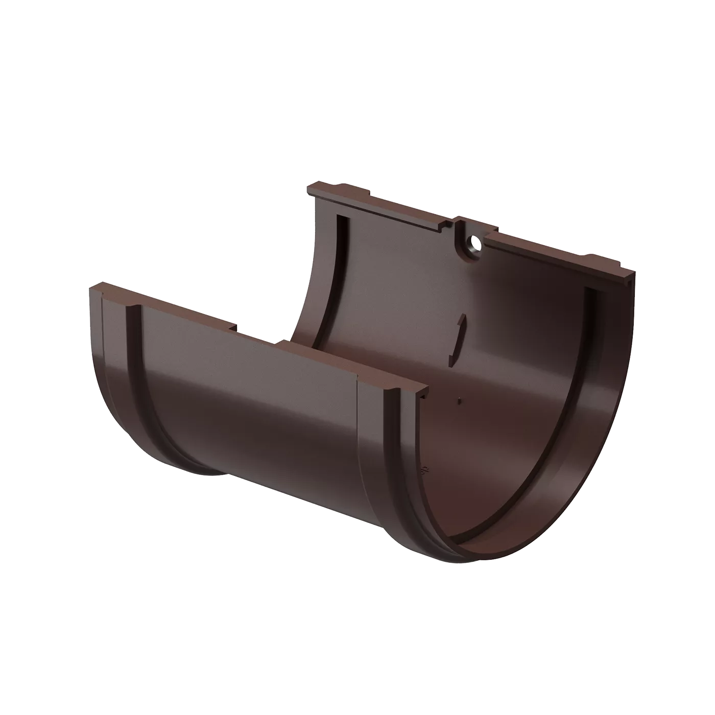Соединитель желобов серии «Premium», окрашенный в цвет «Шоколад» используется для соединения желобов водосточной системы одноименной однотонной серии по одной оси.