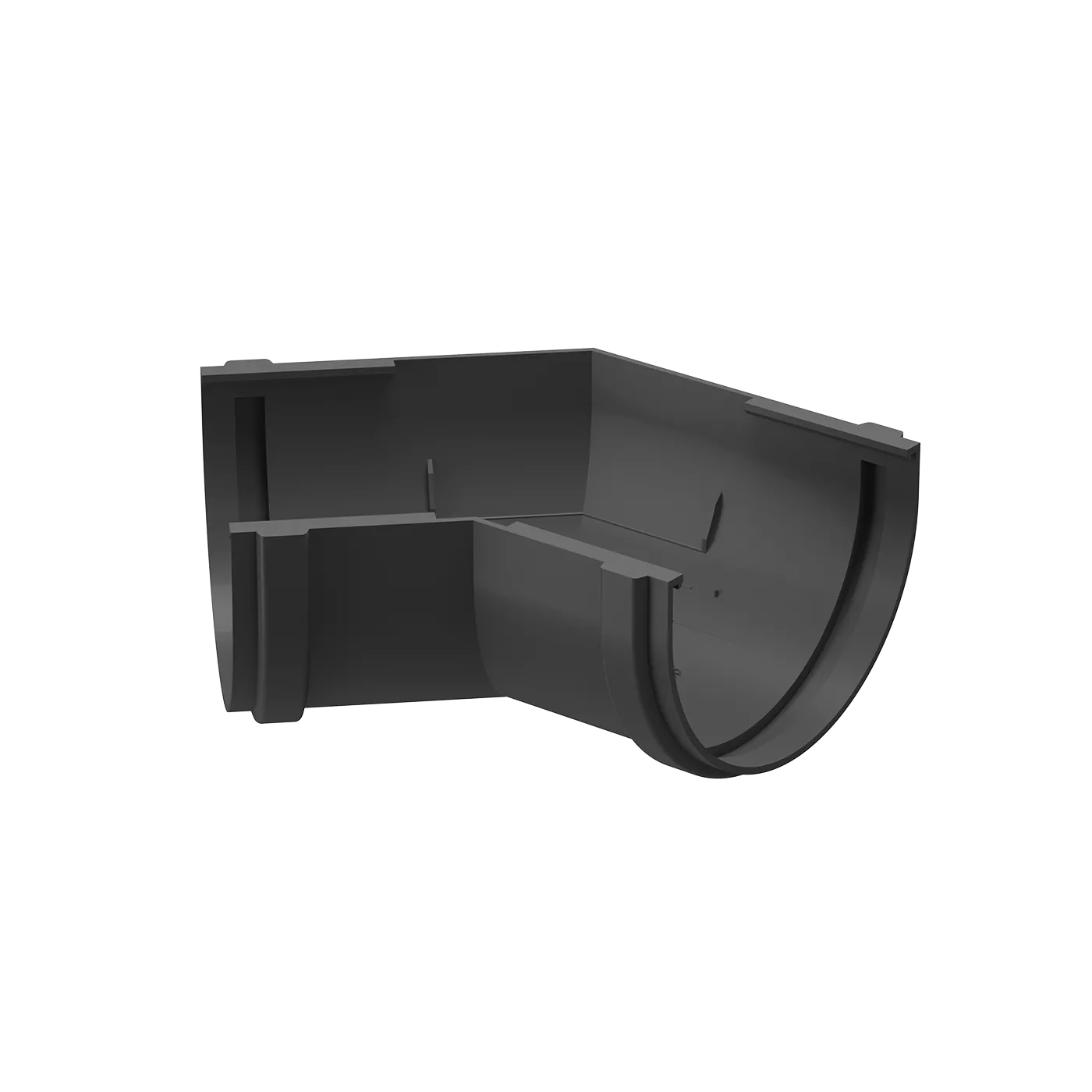 Угол желоба выразительного оттенка «Графит», соединяет два желоба такого же цвета под углом 135 градусов.