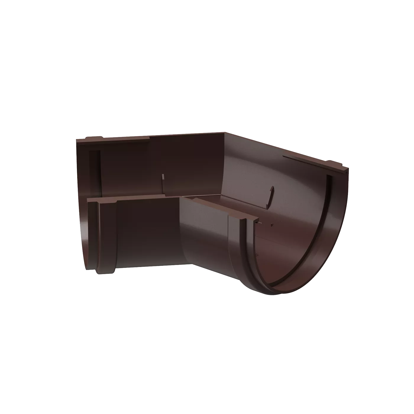 Угол для соединения желобов окрашен в цвет «Шоколад» и служит для соединения двух желобов серии «Premium» такого же цвета под внутренним или внешним углом 135 градусов.