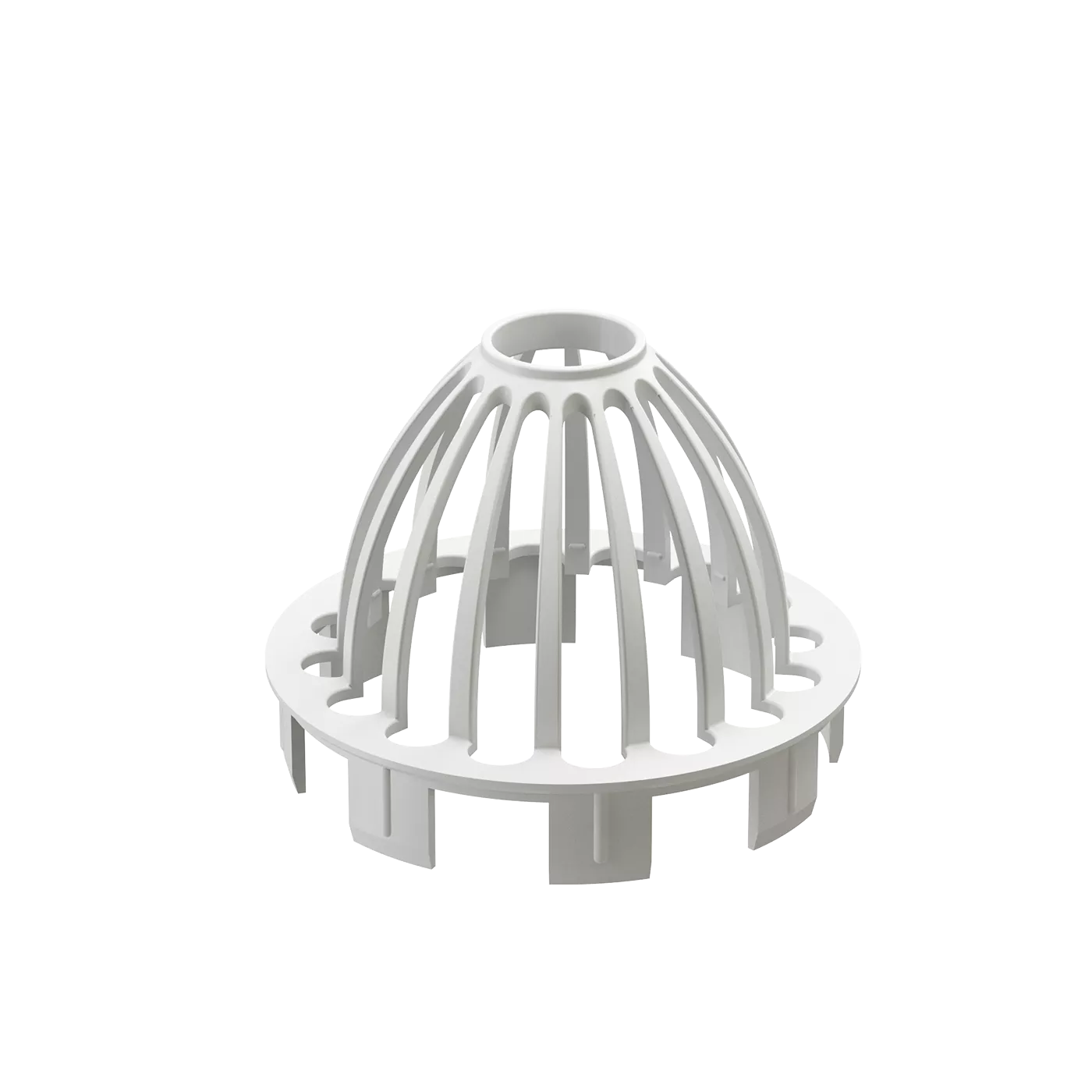 Сетка для защиты водостока имеет структуру решетки. Размещаясь в воронке желоба, препятствует попаданию листвы и мусора в водослив.
