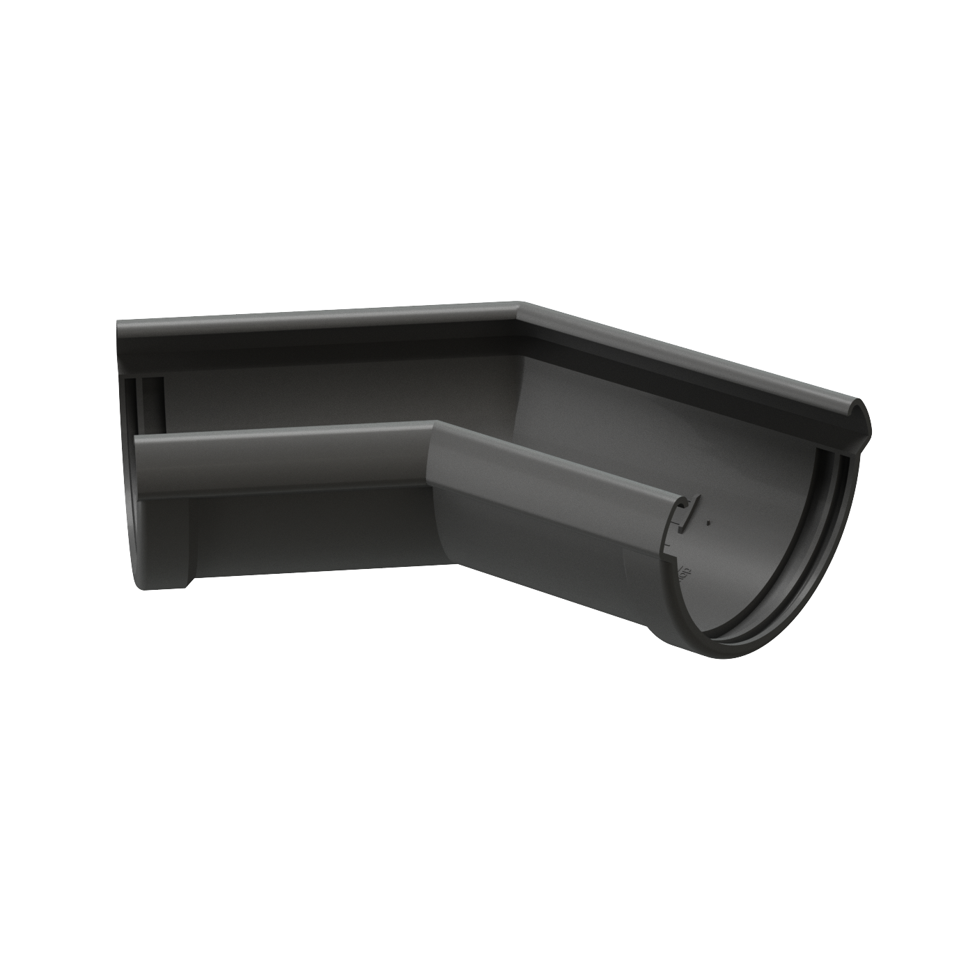 Угловые соединители желобов с углом в 135 градусов серии «LUX» имеют утолщенные стенки. Благодаря им и особенностям материала, элемент водостока устойчив к разрушению и деформации в любых погодных условиях. Цвет «Графит» водосточной системы подойдет как к холодным, так и теплым тонам строения. Водостоки Docke с гарантией производителя только у официальных дилеров.