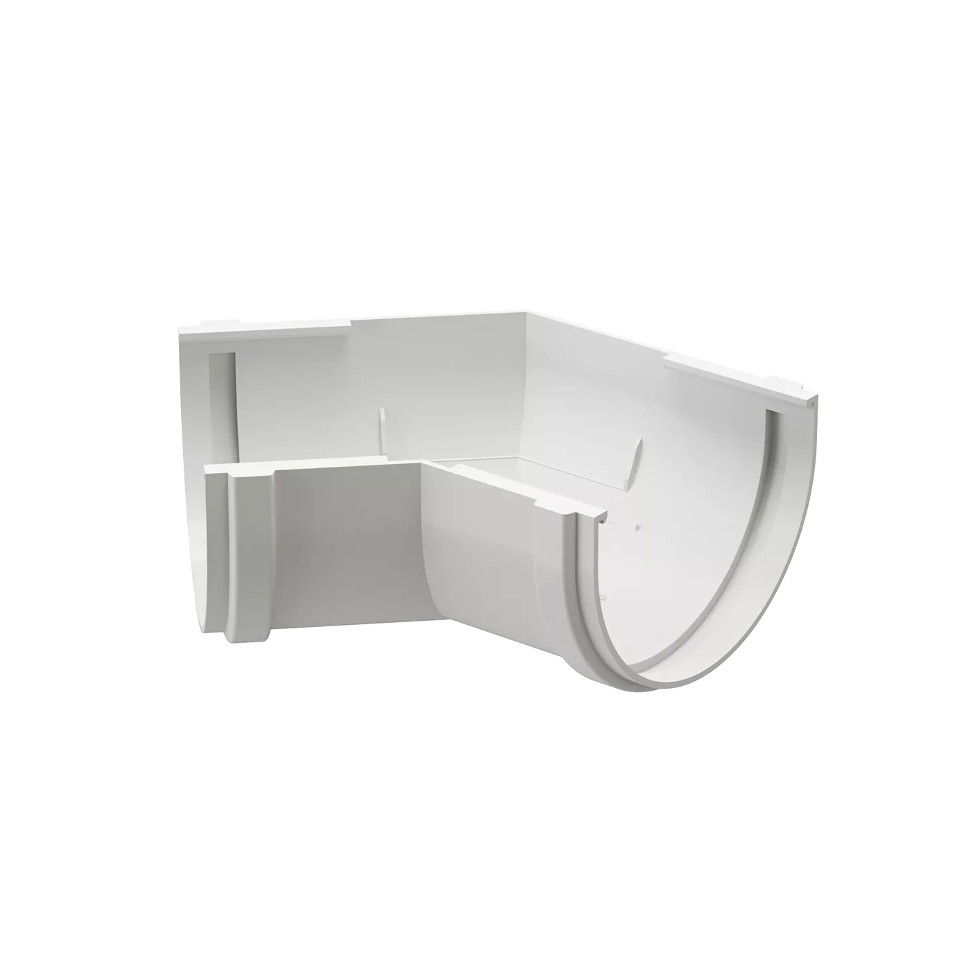 Цвет «Пломбир», в который окрашен угол для соединения желобов, впишется в любую цветовую гамму здания. Нежный оттенок белого также отражает ультрафиолет, что позволяет сохраняться изначальному оттенку водостока дольше. Сертифицированная продукция от производителя с гарантией только у официальных дилеров.