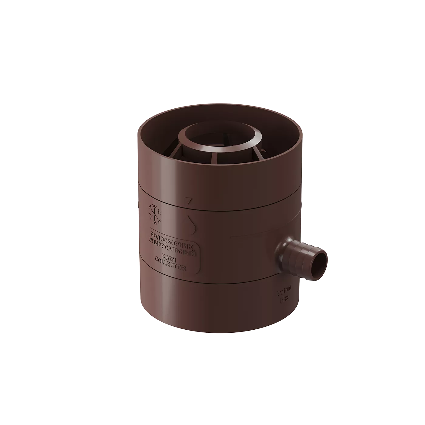 Цвет водосборника идеально сочетается с водостоками «Шоколад» серии LUX и PREMIUM. В готовом виде водосточная система выглядит, как единое целое. Это яркий завершающий штрих в наружной отделке загородного дома.