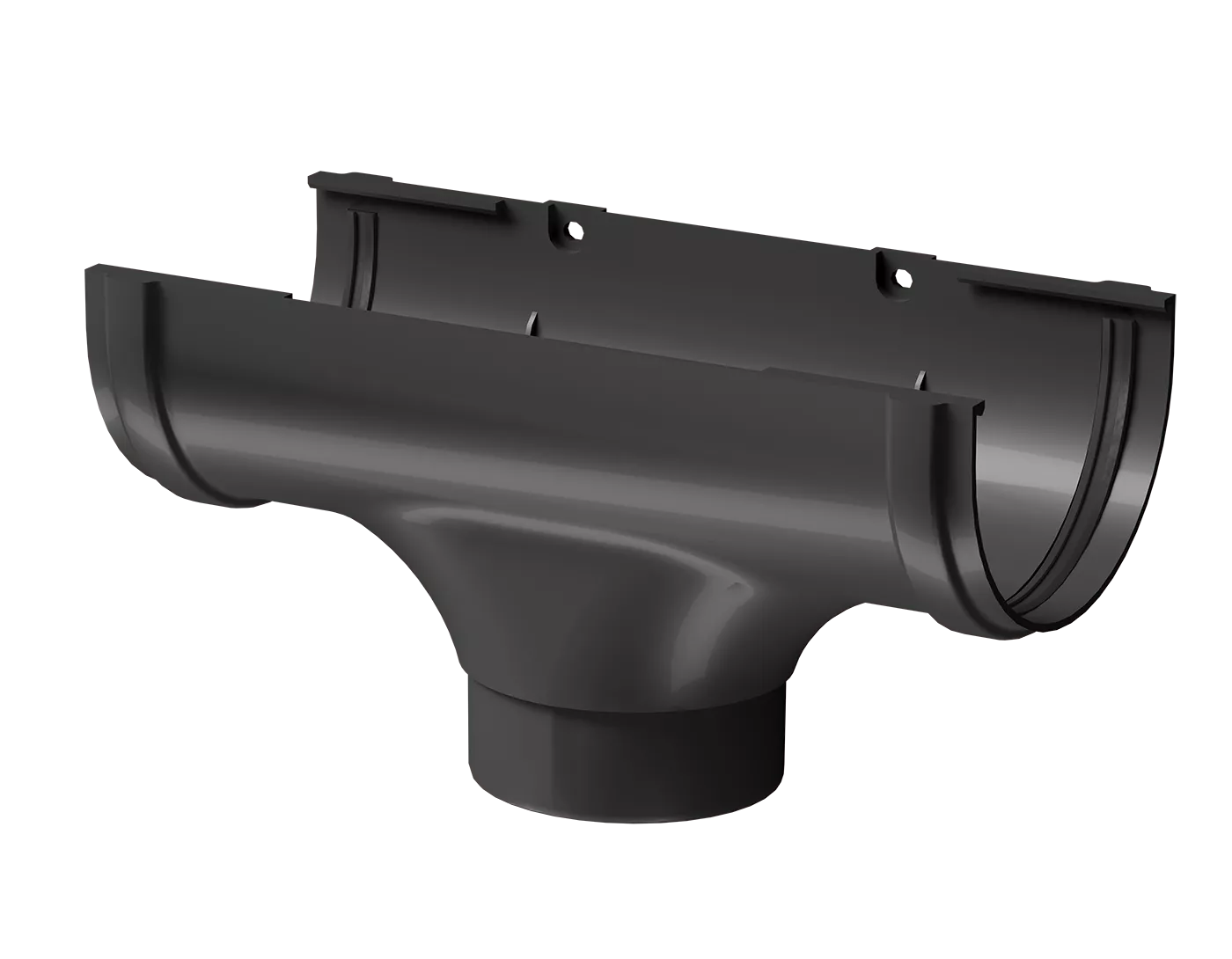 Воронка окрашена в цвет «Графит». Гарантия от производителя на сохранение изначального цвета составляет 7 лет. Водостоки такого оттенка будут гармонично смотреться с крышами и фасадами самых разных цветов. Спрашивайте продукцию Docke у официальных дилеров.