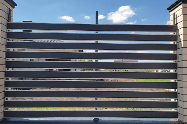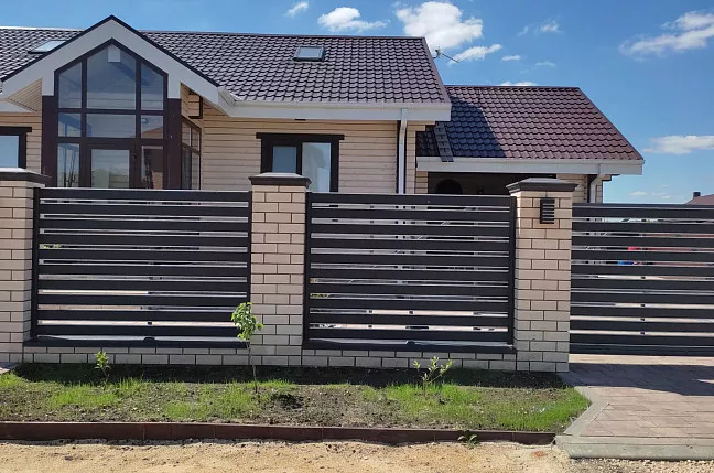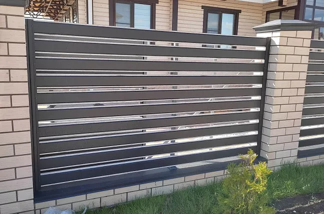 Металлический забор жалюзи Derby по надежности и долговечности не уступает глухим ограждениям.