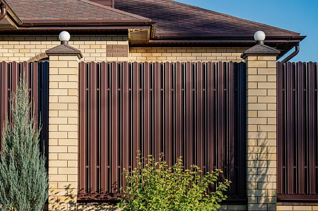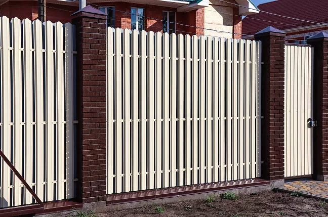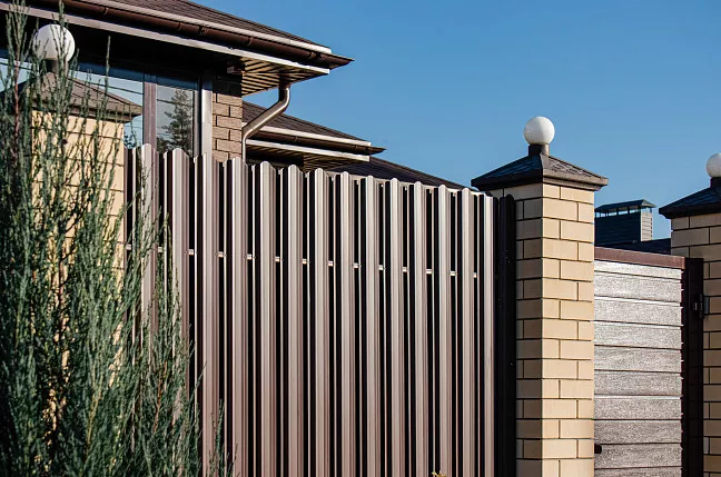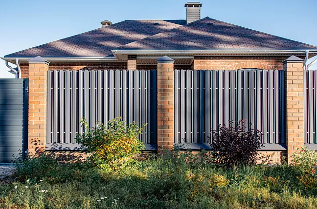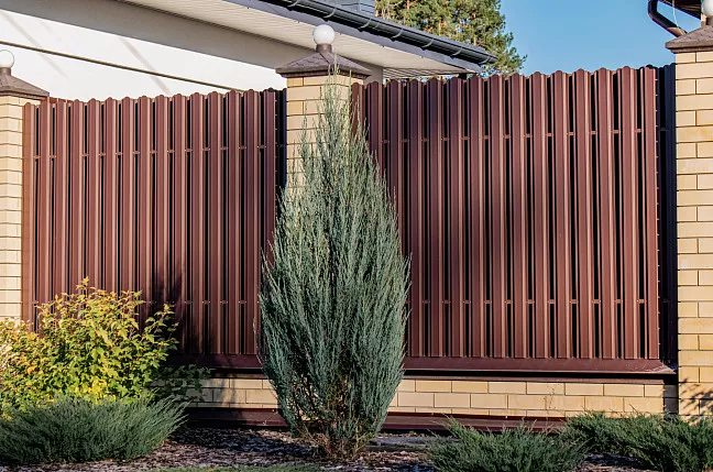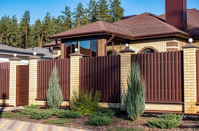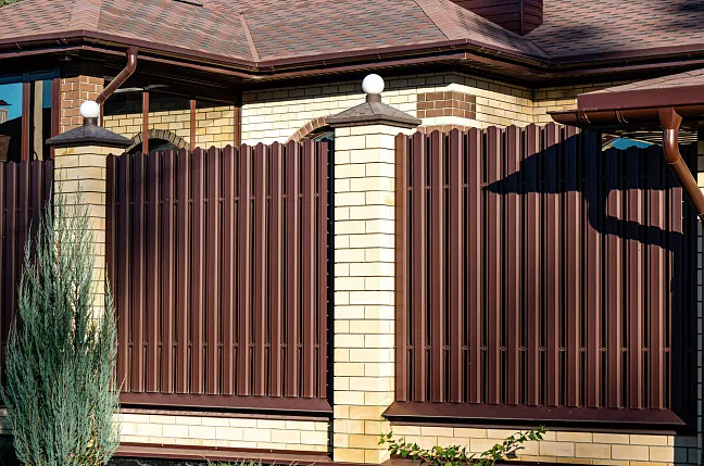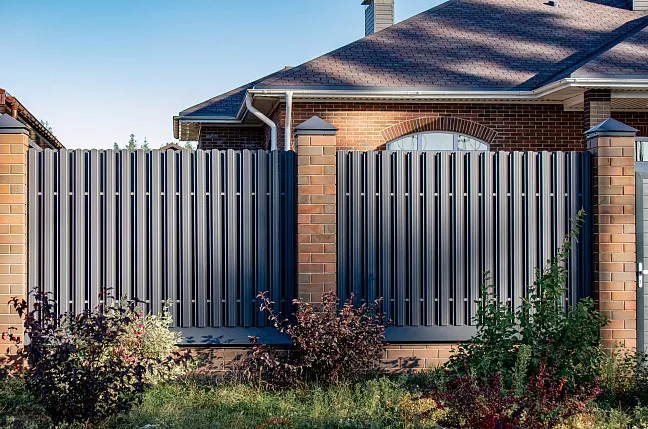 Забор из Штакетника сочетает в себе целый ряд преимуществ, среди которых первейшими являются прочность и долговечность. В продукции завода Металлопрофиль используется высококачественный металлопрокат, составляющий надежную стальную основу изделий, а защиту от коррозии обеспечивают слой цинка и специальное полимерное покрытие. В результате такие изделия от производителя не боятся перепадов температур, дождей и вьюг, воздействия ультрафиолета. Собранный из них забор устойчив к неблагоприятным факторам окружающей среды — например, к пыли, которая оседает на ограждениях, установленных рядом с оживленной дорогой. Полимерное покрытие может быть выполнено в богатой палитре цветов каталога RAL, а также с имитацией рисунка натуральной древесины либо природного камня, причем выбранный оттенок или принт со временем не потускнеет и не выгорит на солнце. Кроме того, в отличие от деревянных ограждений, металл вообще не требует ухода: его не нужно пропитывать от древоточцев и влаги, красить заново каждые два-три года. Если конструкция покрылась пылью в жаркое лето, достаточно просто полить ее водой из садового шланга. Добавить к этому привлекательную цену Штакетника — и получим материал, являющийся одним из лучших вариантов при устройстве всех типов заборов.