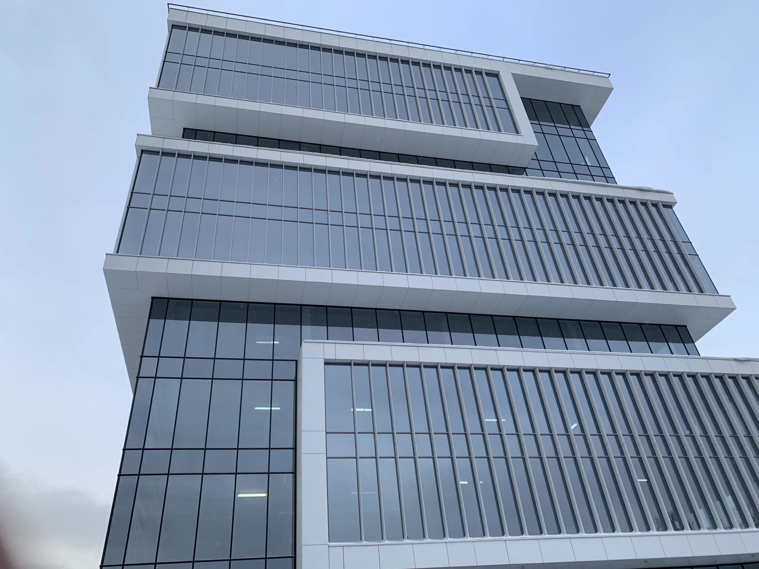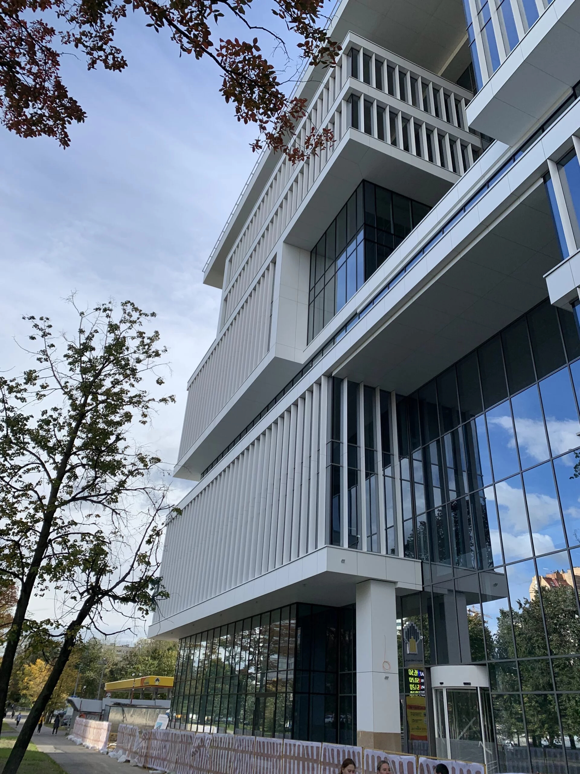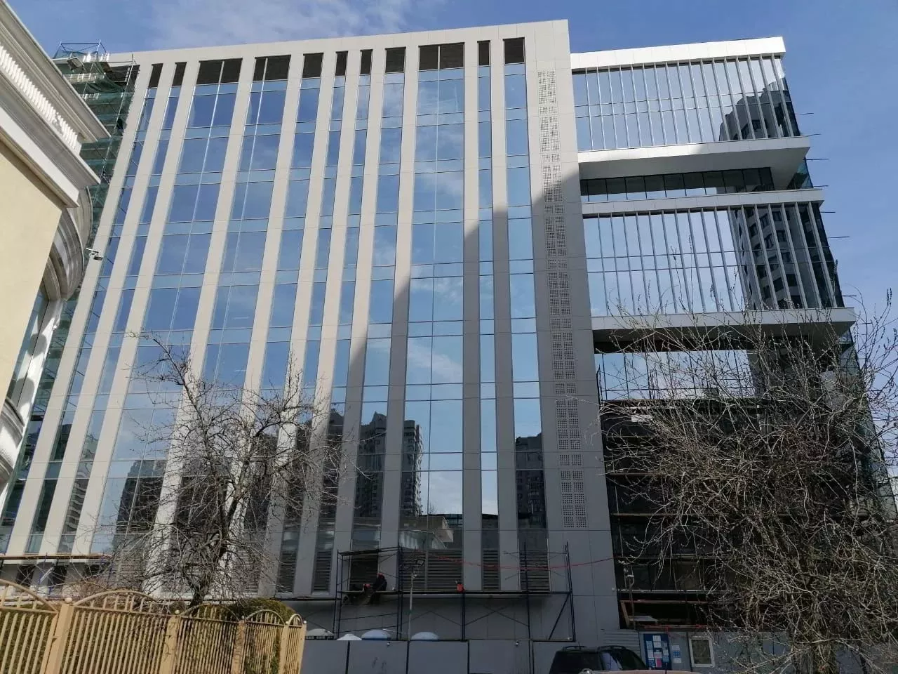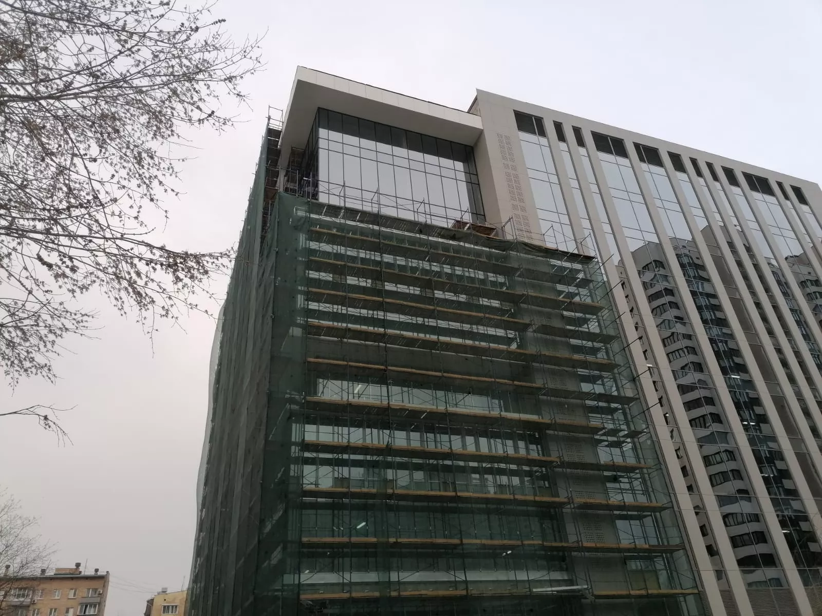 Отделка офисного здания в Москве площадью 1800 квадратных метров заняло около полугода. В процессе его отделки наши бригады неоднократно преодолевали различные трудности в виде: неработающих лифтов и пешего подъема по лестницам на высоту 14 этажей, запреты выхода на фасад из-за штормовых предупреждений, ведение одновременных работ с другими организациями (пожарные, лифтеры, электрики, витражники), раскрой материала прямо на объекте и др. Под строгим контролем технического надзора работа была завершена успешно и в срок.