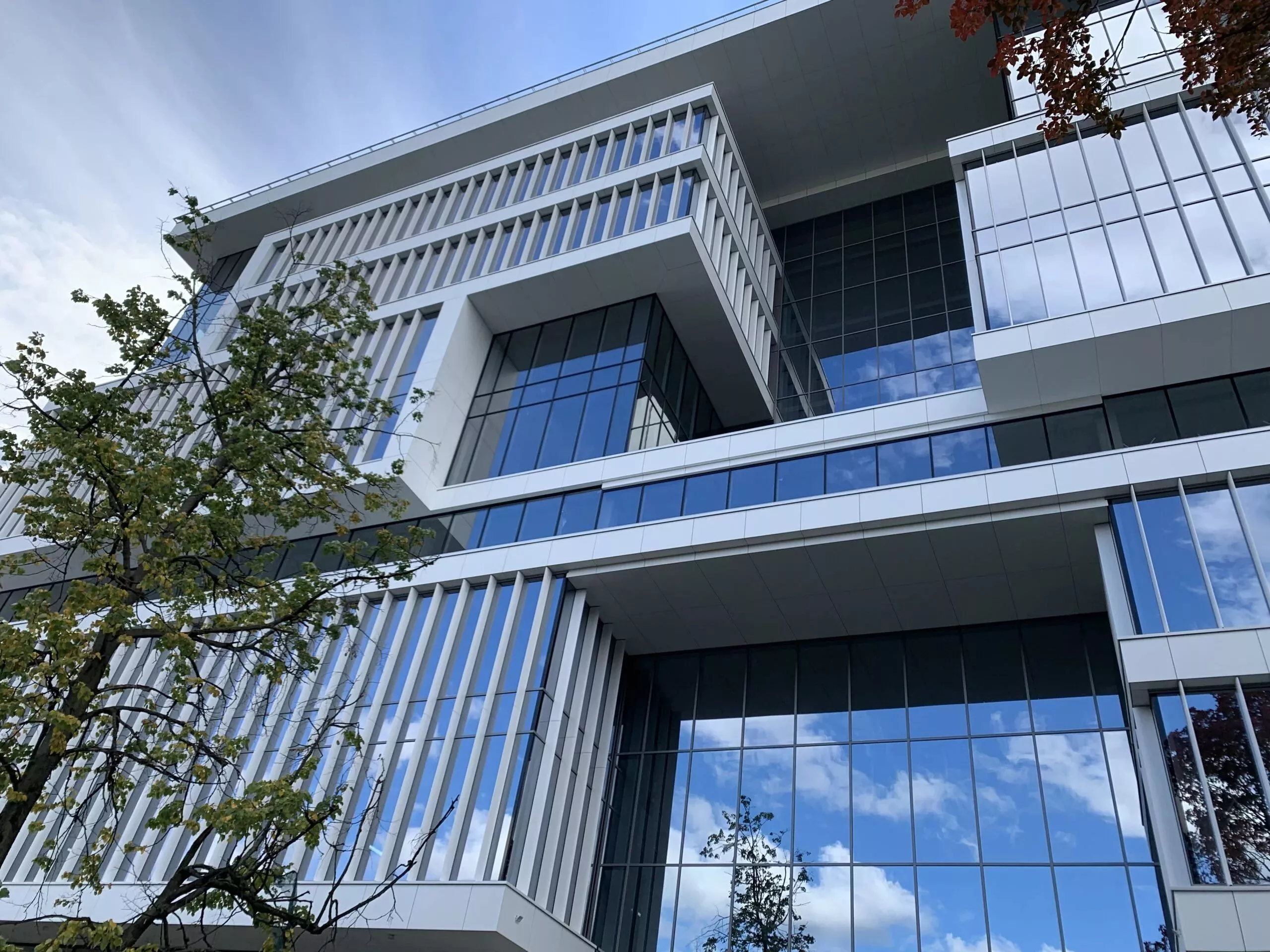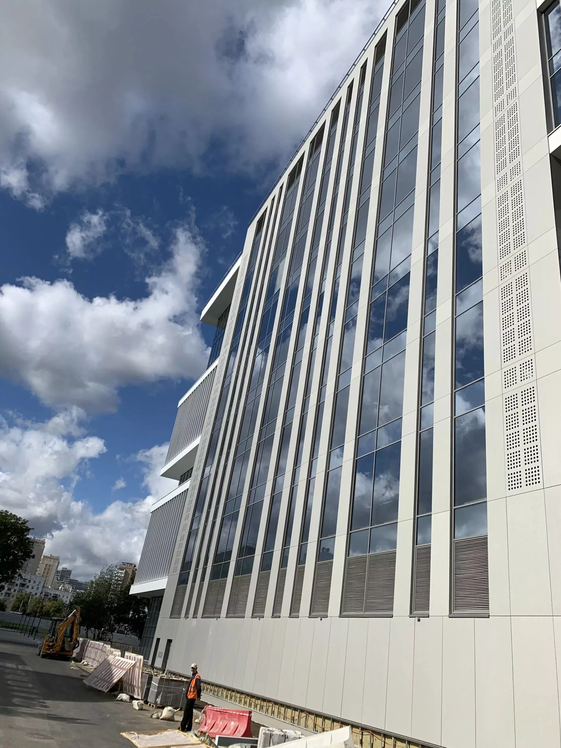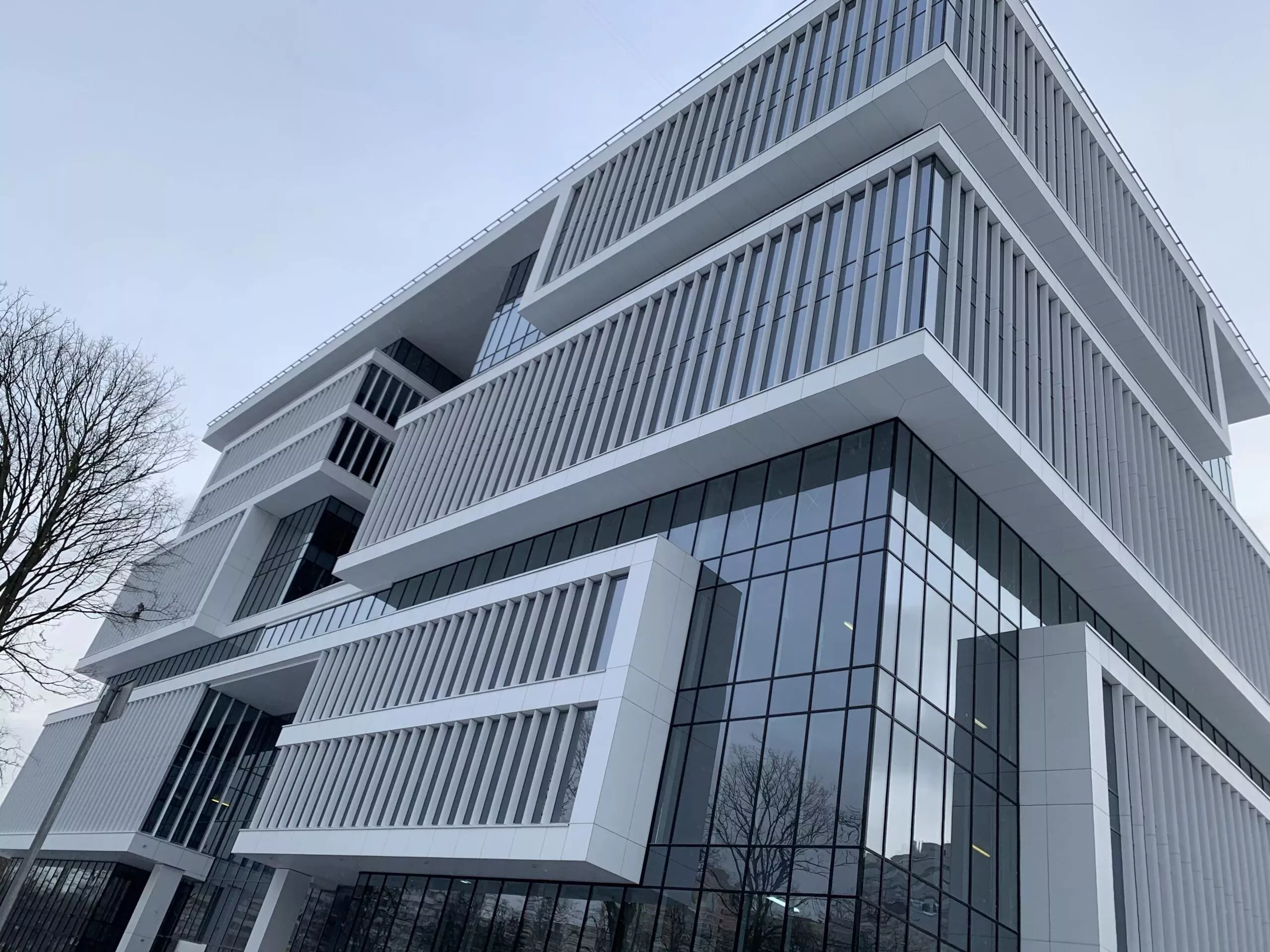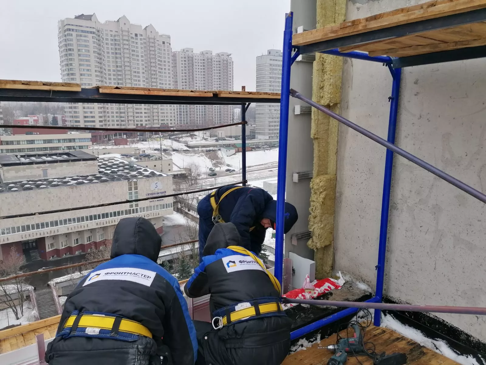 Отделка офисного здания в Москве площадью 1800 квадратных метров заняло около полугода. В процессе его отделки наши бригады неоднократно преодолевали различные трудности в виде: неработающих лифтов и пешего подъема по лестницам на высоту 14 этажей, запреты выхода на фасад из-за штормовых предупреждений, ведение одновременных работ с другими организациями (пожарные, лифтеры, электрики, витражники), раскрой материала прямо на объекте и др. Под строгим контролем технического надзора работа была завершена успешно и в срок.