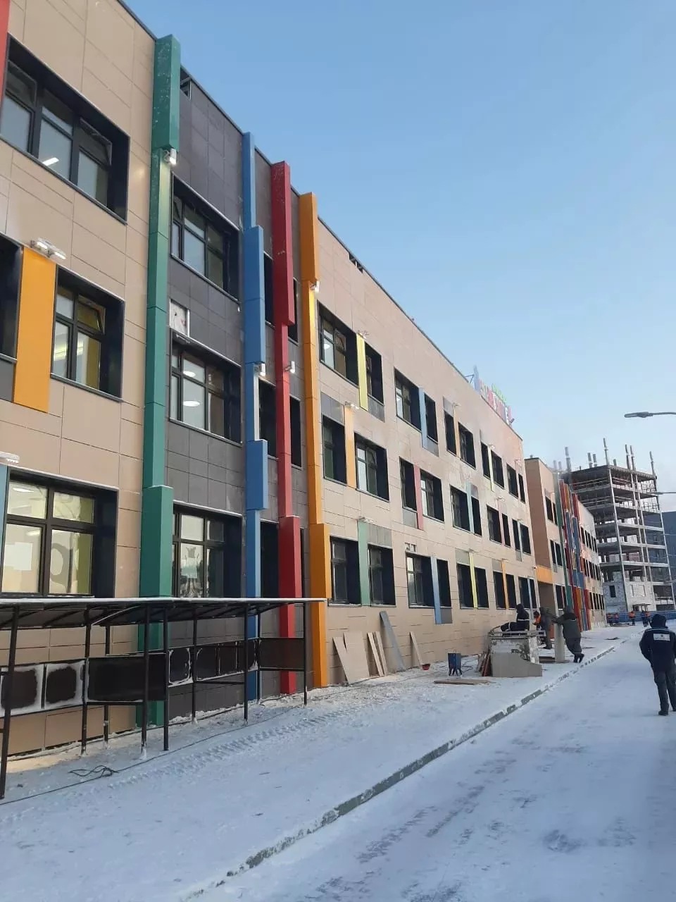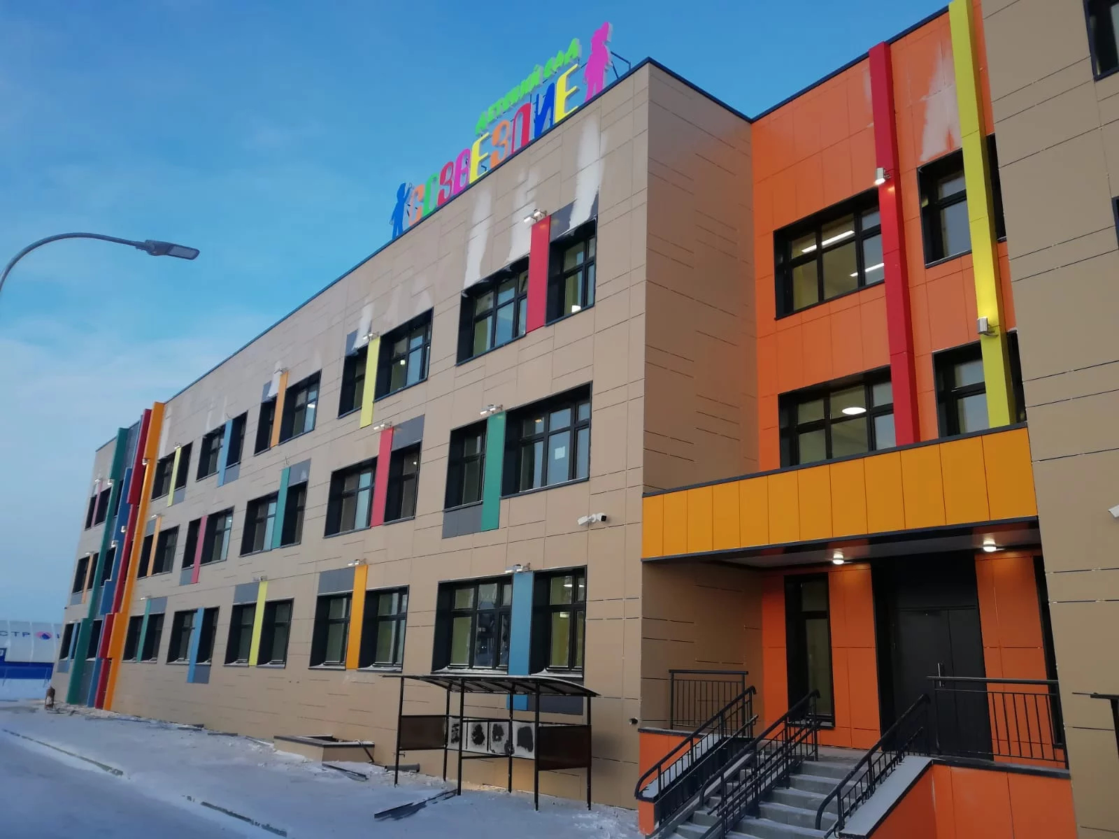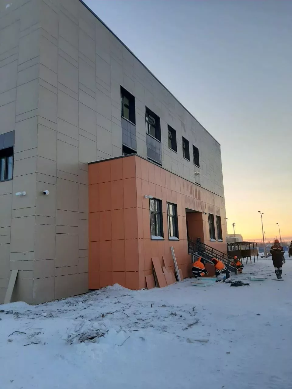 Облицовка и утепление здания детского сада в Новом Уренгое выполнена керамогранитом. Не смотря на трудности в виде морозов в минус 35 градусов и сильных ветров - фасад площадью около 200 кв.м. был отделан за 28 дней. Новое здание детского сада было готово к открытию точно в срок. Перечень выполненных работ:Установка подсистемыУтепление 100 ммОблицовка фасада