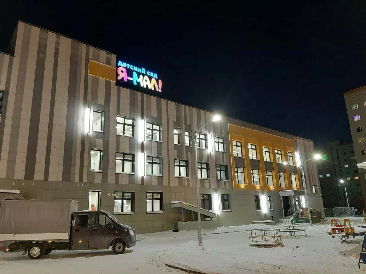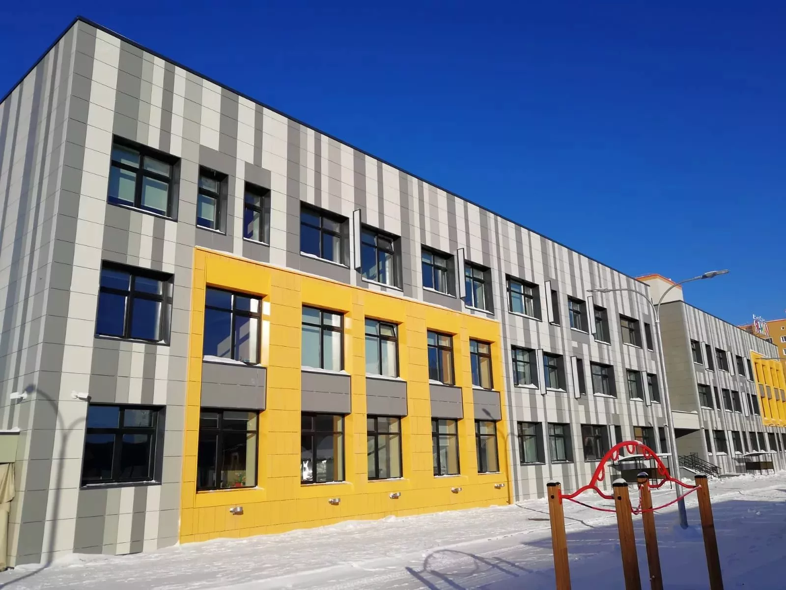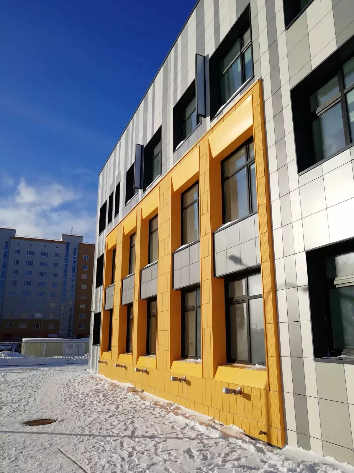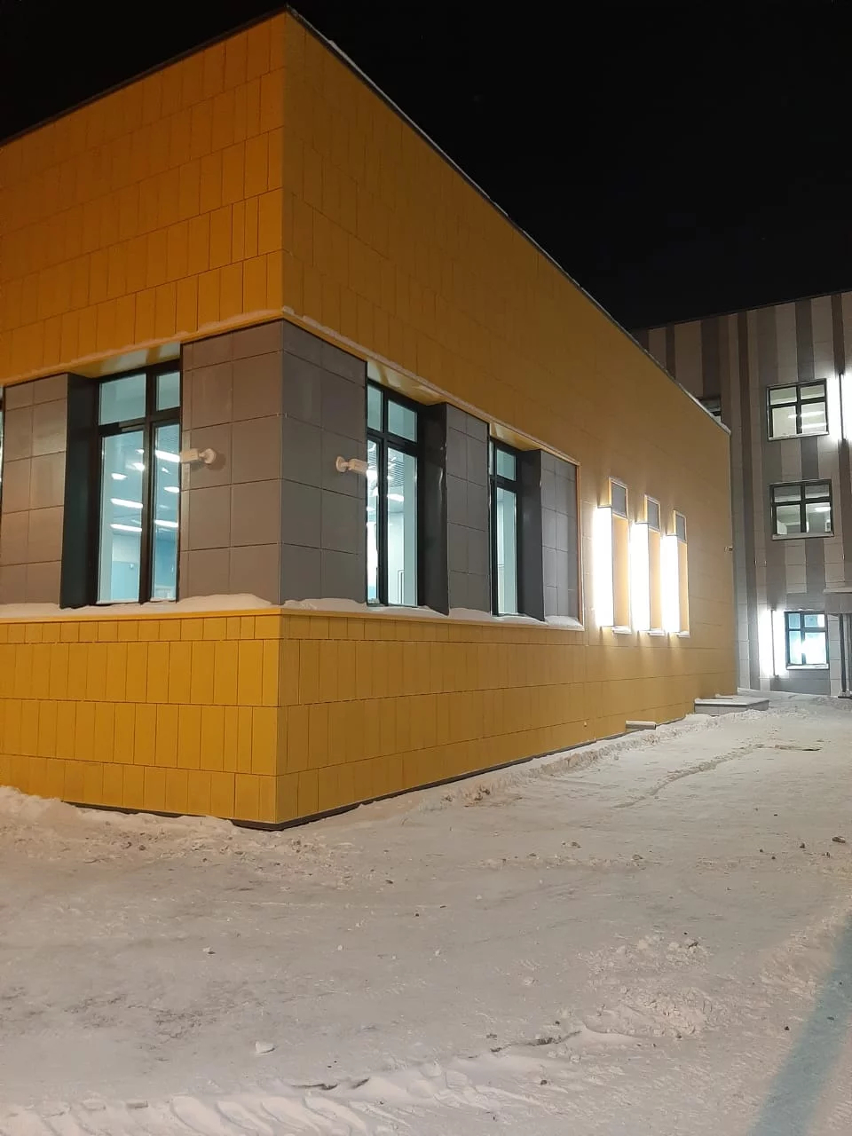 Отделка фасада здания детского сада в Новом Уренгое производилась терракотовыми фасадными панелями CN Ceramic китайского производства. Объем работ выполненных нашей компанией составил около 300 кв.м.. Выполнение задачи заняло 1 месяц, учитывая непростые условия работы в виде 35-градусных морозов и сильных сибирских ветров. Как итог: яркий, надежный и теплый фасад. Перечень выполненных работ: Установка подсистемыУтепление 100 ммОблицовка фасада