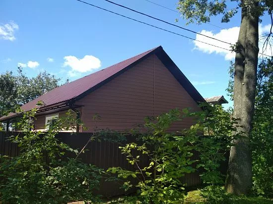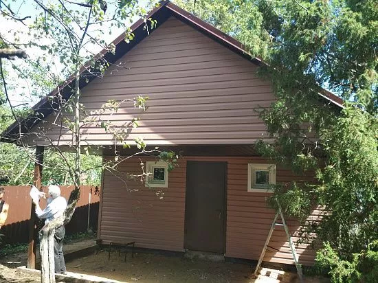 Монтаж объекта выполнен бригадой компании " ФРОНТМАСТЕР". Площадь работ составила 50 метров квадратных. Для обновления фасада использованы: Сайдинг Docke Корабельный брус "Капучино"; Софиты с центральной перфорацией цвет "Шоколад"; Водосток Docke Standart "Шоколад" Фасадные панели Burg "Темный" *Стоимость указана с учетом монтажа