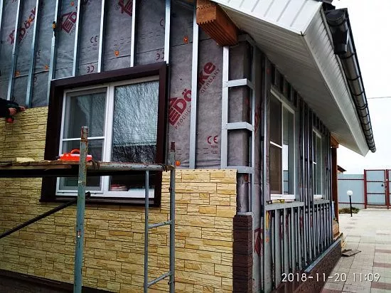 Монтаж-демонтаж лесов (до 12 м высота)Монтаж металлических отливовМонтаж утеплителя 50 ммМонтаж металлических комплектующихМонтаж мет. обрешетки по кирпичу/бетонуМонтаж мет. обрешетки по деревуМонтаж гидро-пароизоляционной пленкиМонтаж виниловых комплектующихМонтаж виниловых панелей